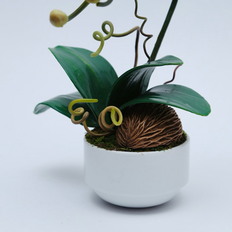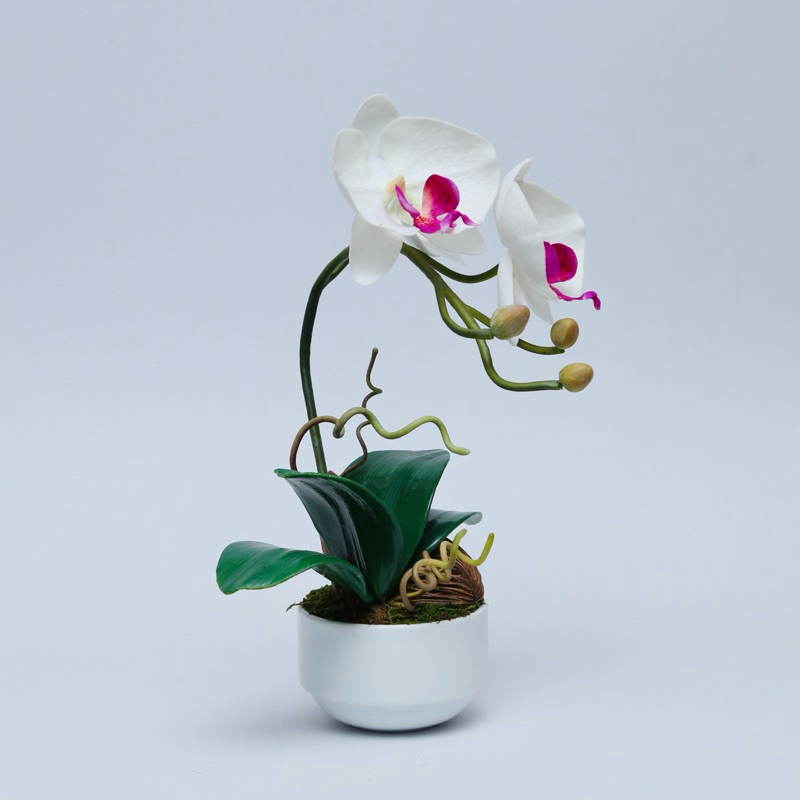 Handitop แจกันดอกกล้วยไม้ประดิษฐ์ ฟาแลนนอปซิส 3 ดอก ดอกไม้ตกแต่งบ้าน