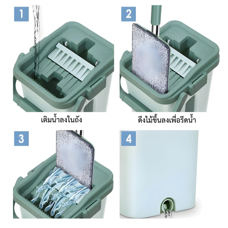 [ลูกค้าใหม่จ่าย 1 บาท] ถังรีดน้ำครบชุดไ ม้ถูพื้น+ถังรีดน้ำ ผ้าถูพื้น ไม้ม็อบ Clean ทำความสะอาด ผ้า 2 ผืน