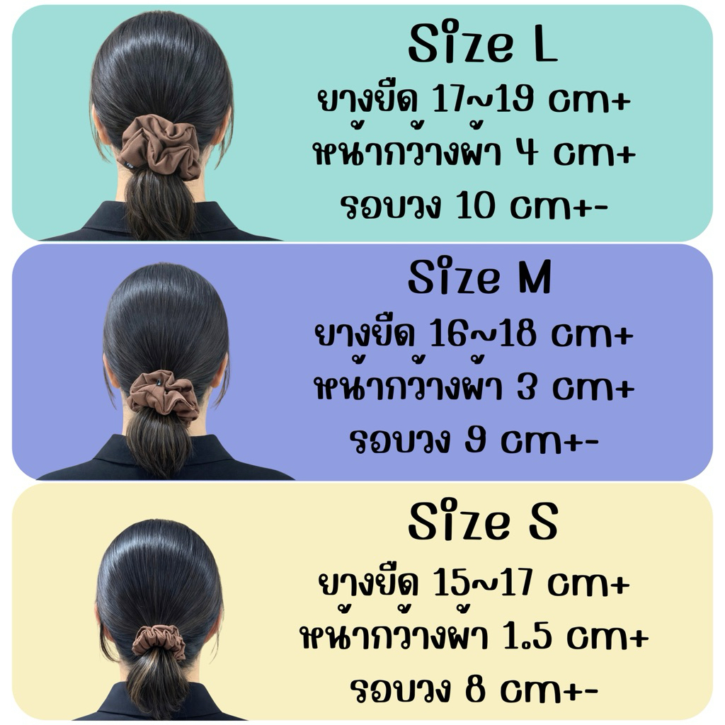 ยางมัดผม (รวมสีขายดี ขาว กากี น้ำตาล ดำ) Scrunchies ผ้าเนื้อด้าน นุ่มไม่กินผม มีขนาดให้เลือก