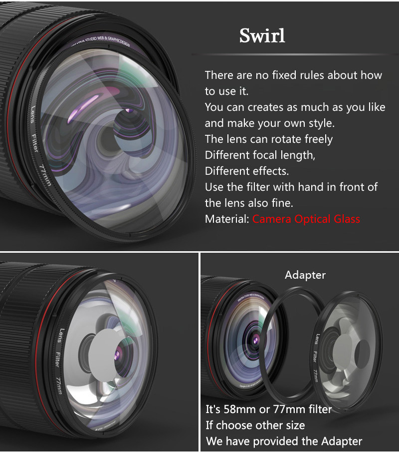 Knightx Kaleidoscope Prism Swirl Filter เอฟเฟกต์พิเศษอุปกรณ์เสริมการถ่ายภาพเลนส์สําหรับเลนส์ DSLR