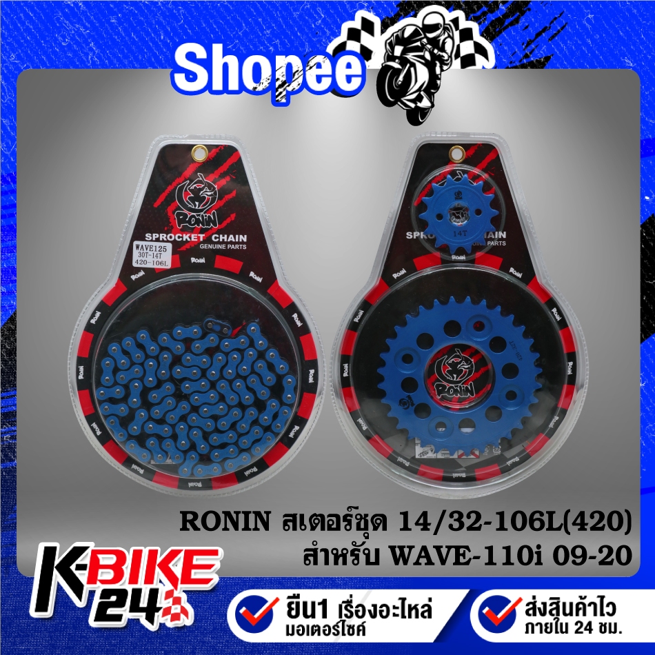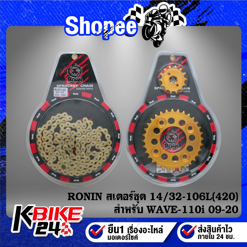 RONIN สเตอร์ชุด(14-32-106L) WAVE-125,WAVE-110i,WAVE-125R,S,Iบังลม ***มีหลายสีให้เลือก***