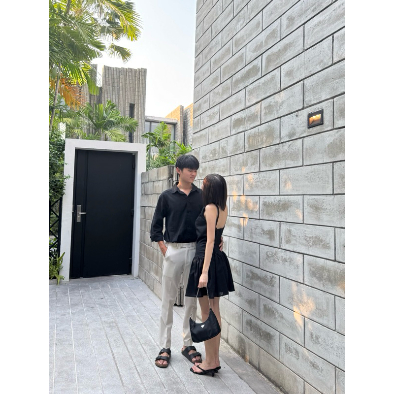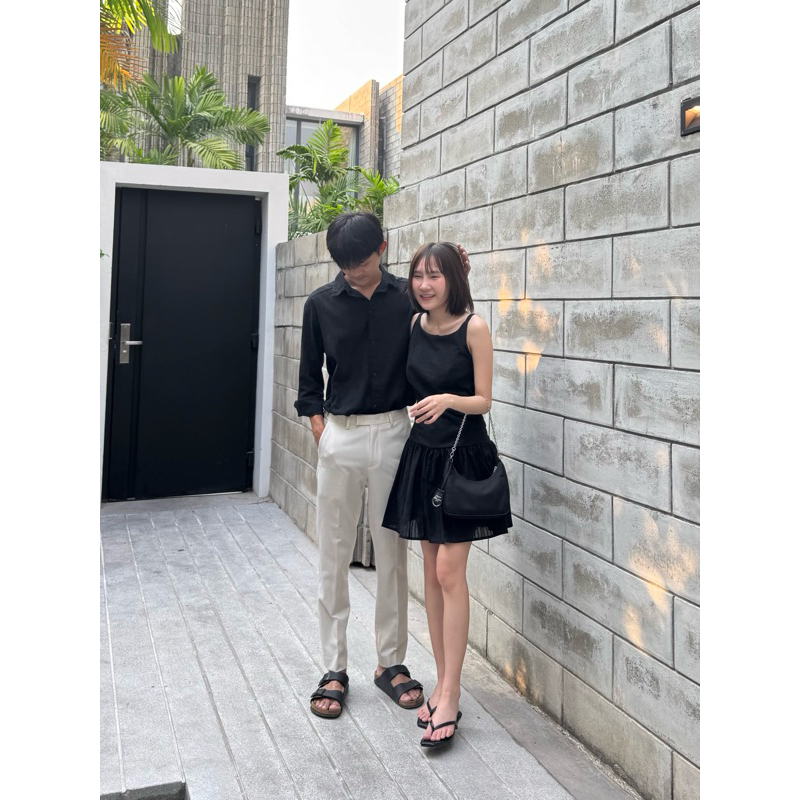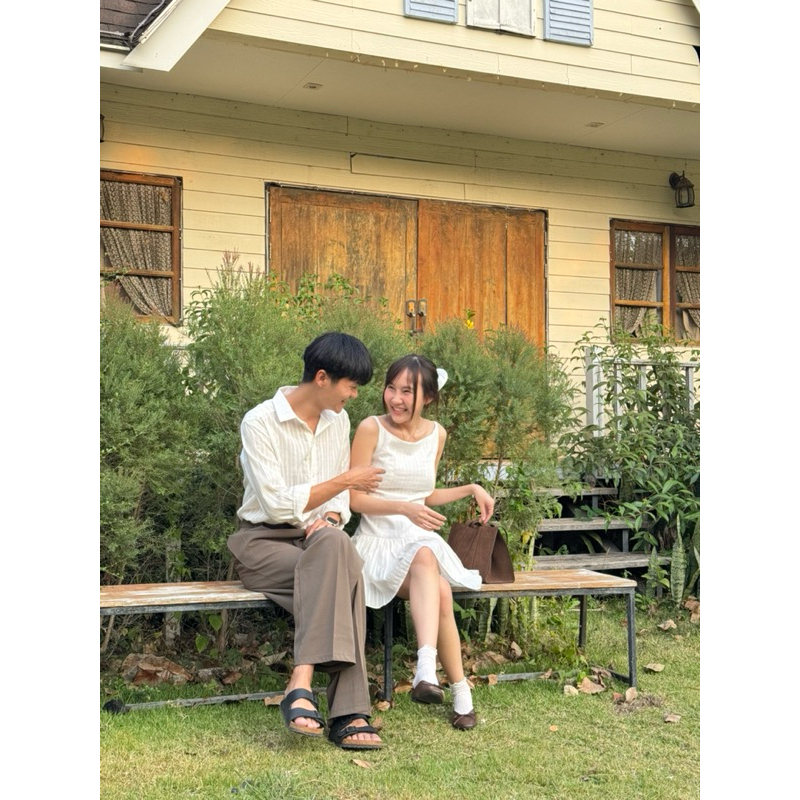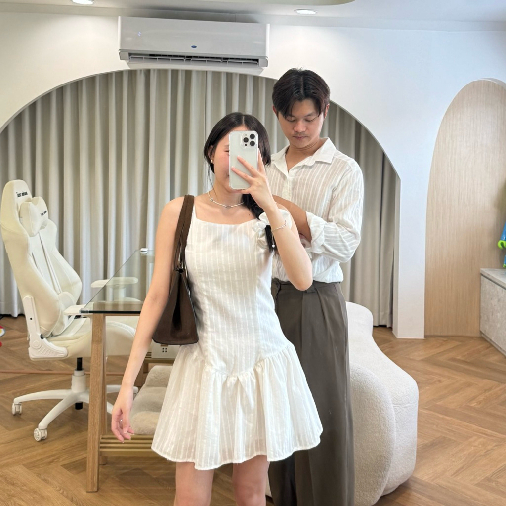 2pcs - Couple Dobby Mini Dress เสื้อคู่มินิเดรส (มินิเดรส + เสื้อเชิ้ตผู้ชายแขนยาว ผ้าคอตตอนทอลาย)
