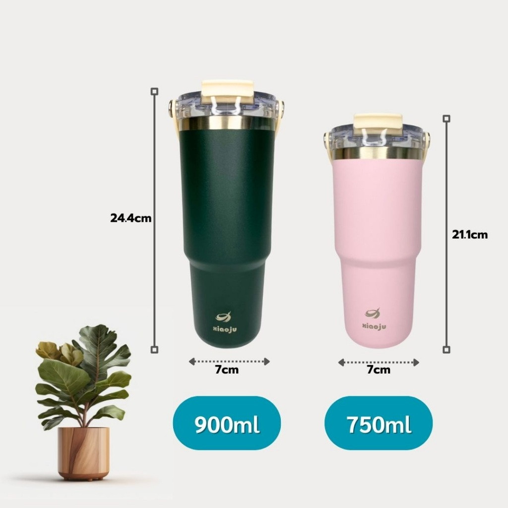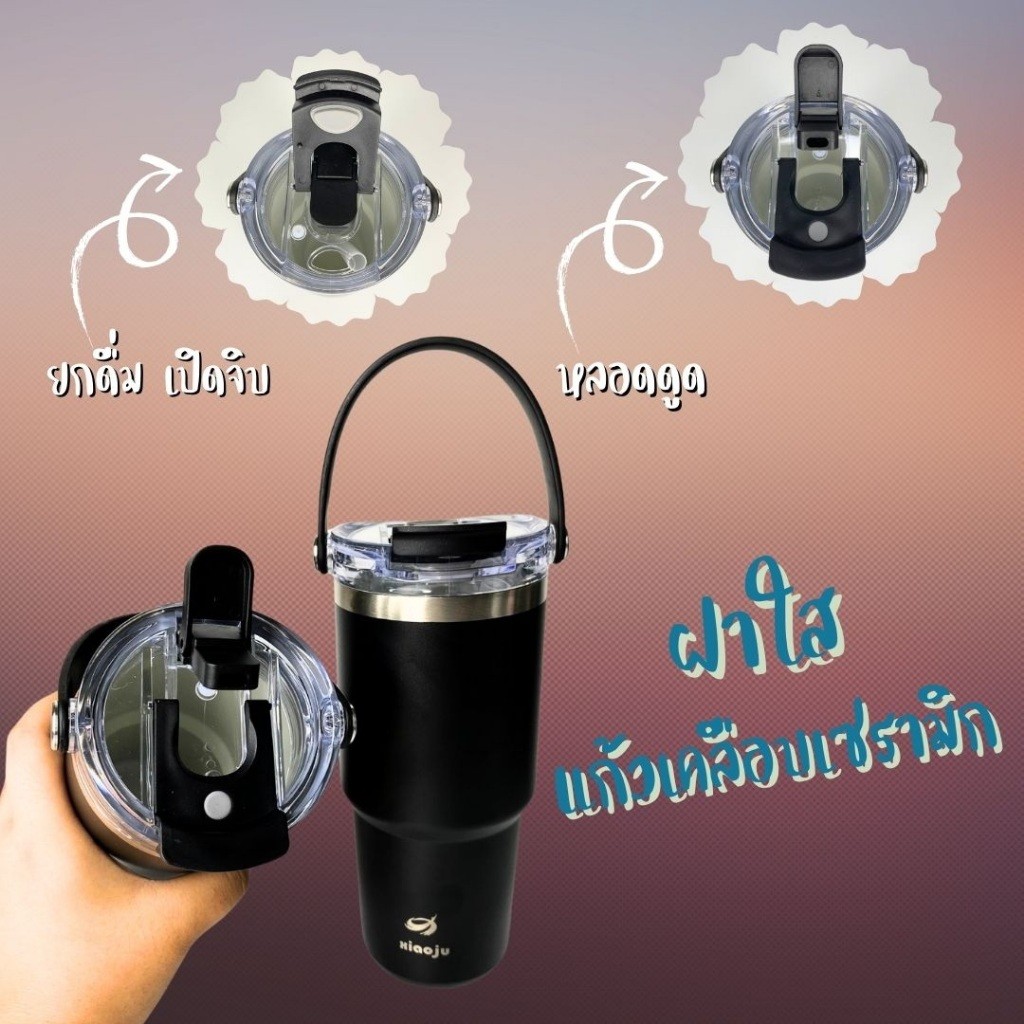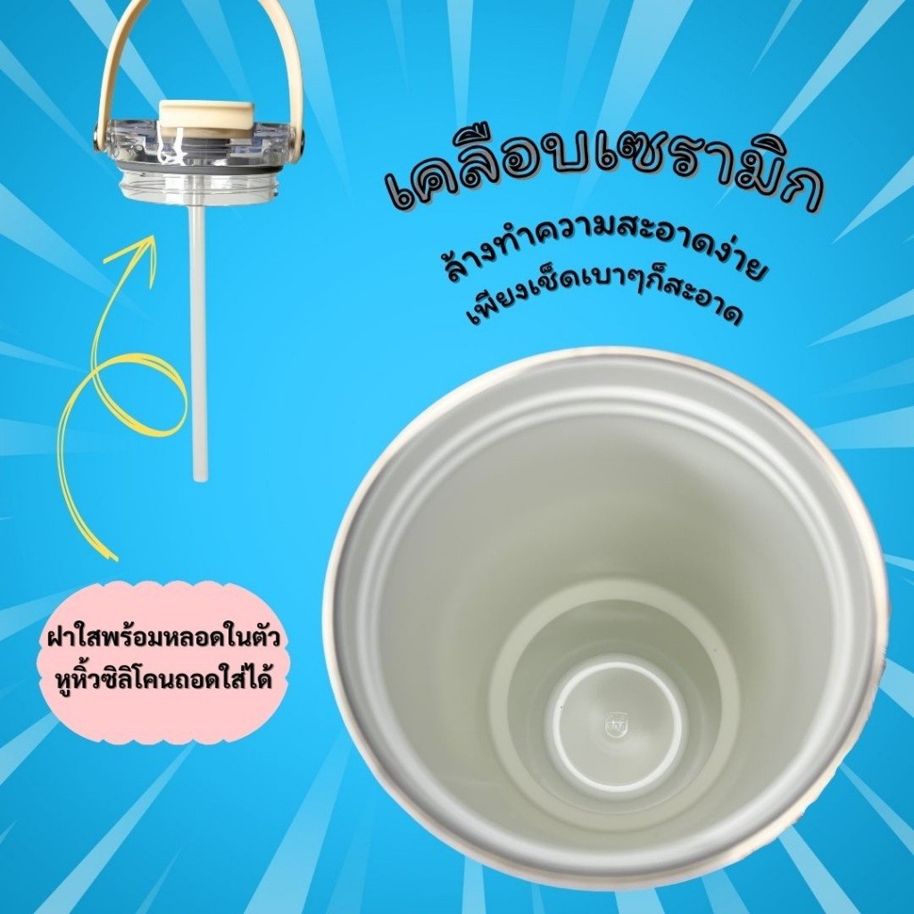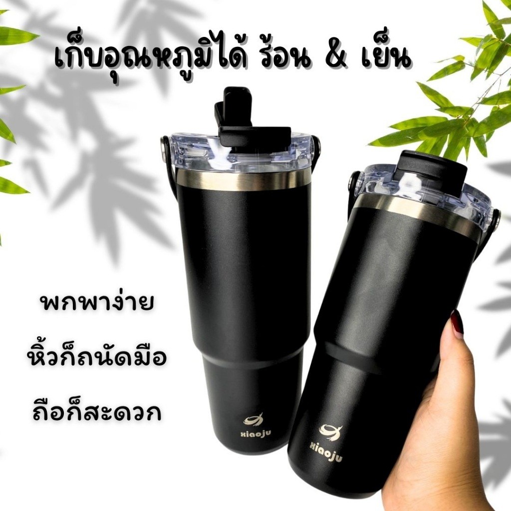 XIAOJU เซรามิก แก้วน้ำเสี่ยวจู เก็บความเย็น พร้อมหูหิ้วซิลิโคน 2 ขนาด 750ml,900ml สแตนเลส304 ยกดื่มและหลอดดูดในฝาเดียว