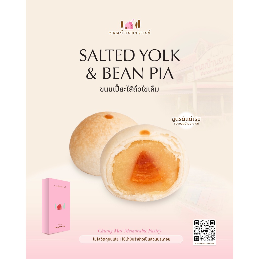 ขนมเปี๊ยะไส้ถั่ว-ไข่เค็ม (16ลูก) ขนาด 380 กรัม (ขนมบ้านอาจารย์)