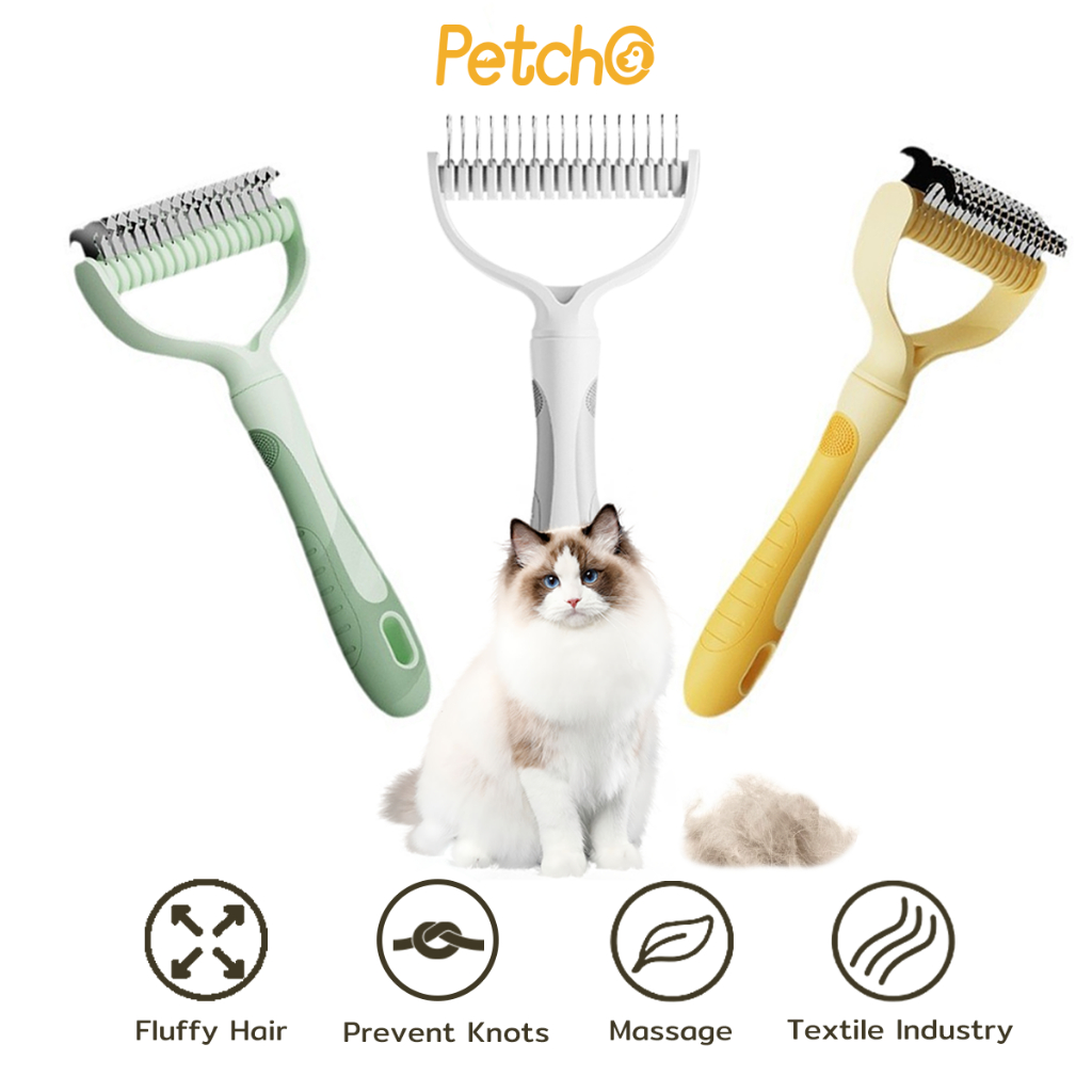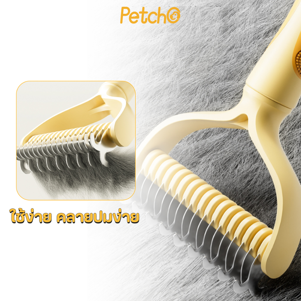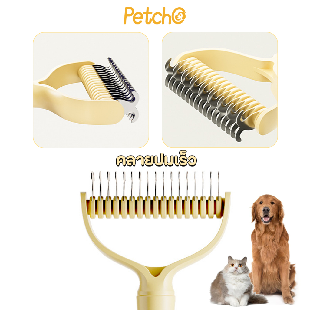 Petcho หวีสัตว์เลี้ยง หวีสุนัข หวีแมว แปรงหวีคราดสองด้าน หวีสางขนที่พันกัน ใช้ทั้งสุนัขและแมว