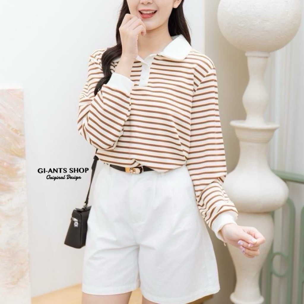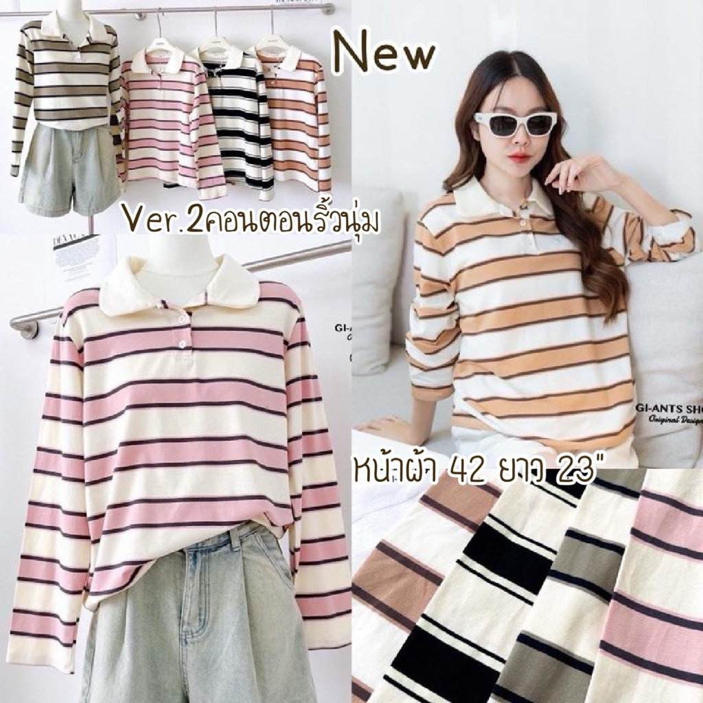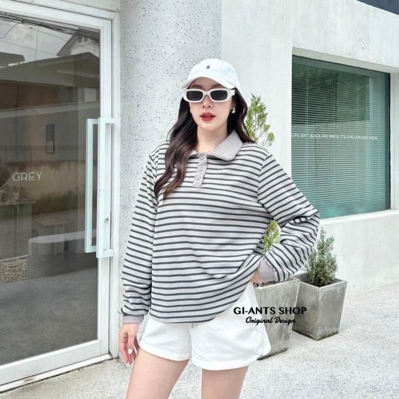 เสื้อแขนยาวคอปกริ้วMinimal GI33 ผ้าคอตตอนริ้วหนานุ่ม (มี 3 แบบ)