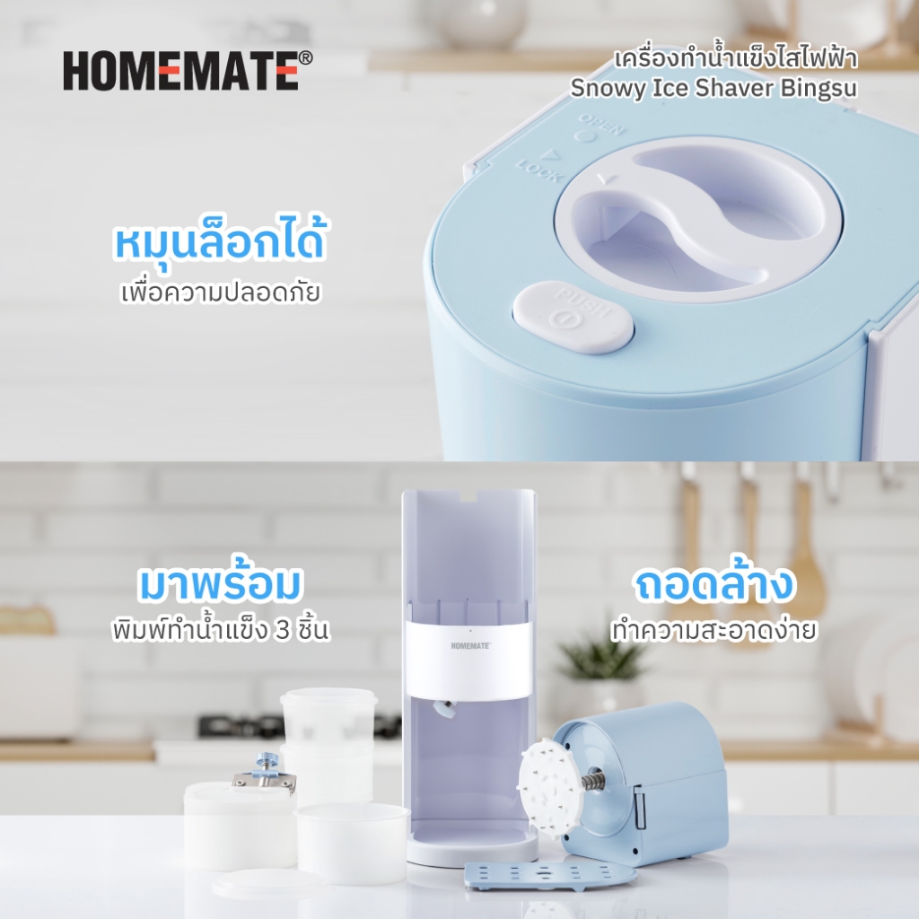 HOMEMATE เครื่องทำน้ำแข็งไสไฟฟ้า สีฟ้า HOM-12S7774