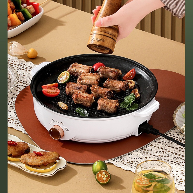 กระทะไฟฟ้ามินิ 26cm. หม้อไฟฟ้า กระทะบาร์บีคิว กระทะไฟฟ้าอเนกประสงค์ เคลือบเทปล่อน วัสดุสแตนเลสคงทน ใช้งานดี D0165