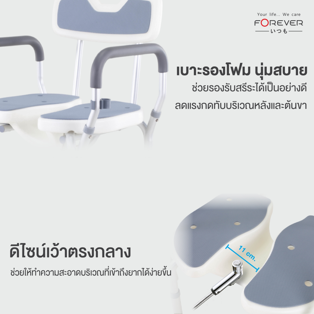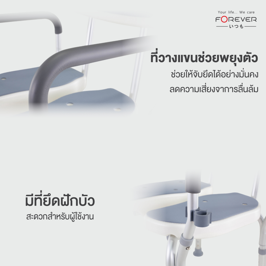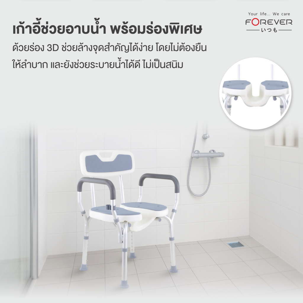 [ของแท้ 100%] Forever เก้าอี้อาบน้ำ มีช่อง วัสดุอลูมิเนียม ปรับระดับได้ เก้าอี้อาบน้ำผู้ป่วย หญิงตั้งครรภ์