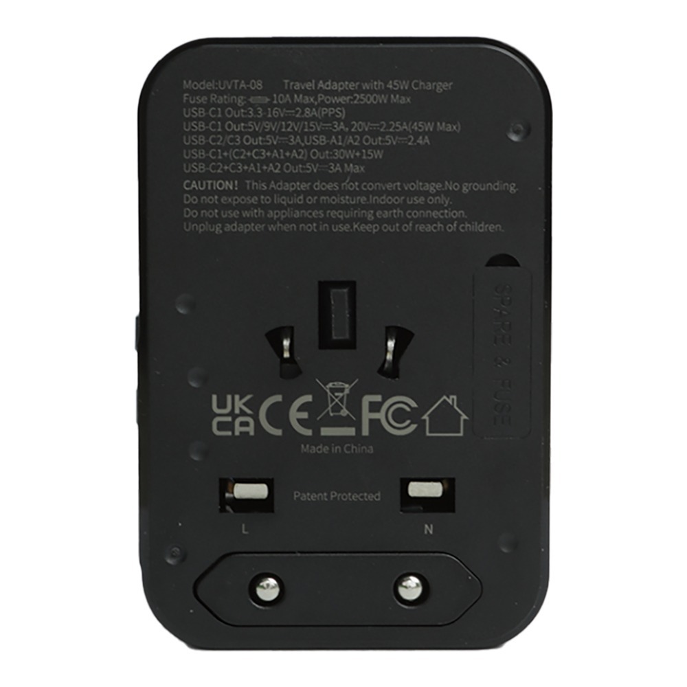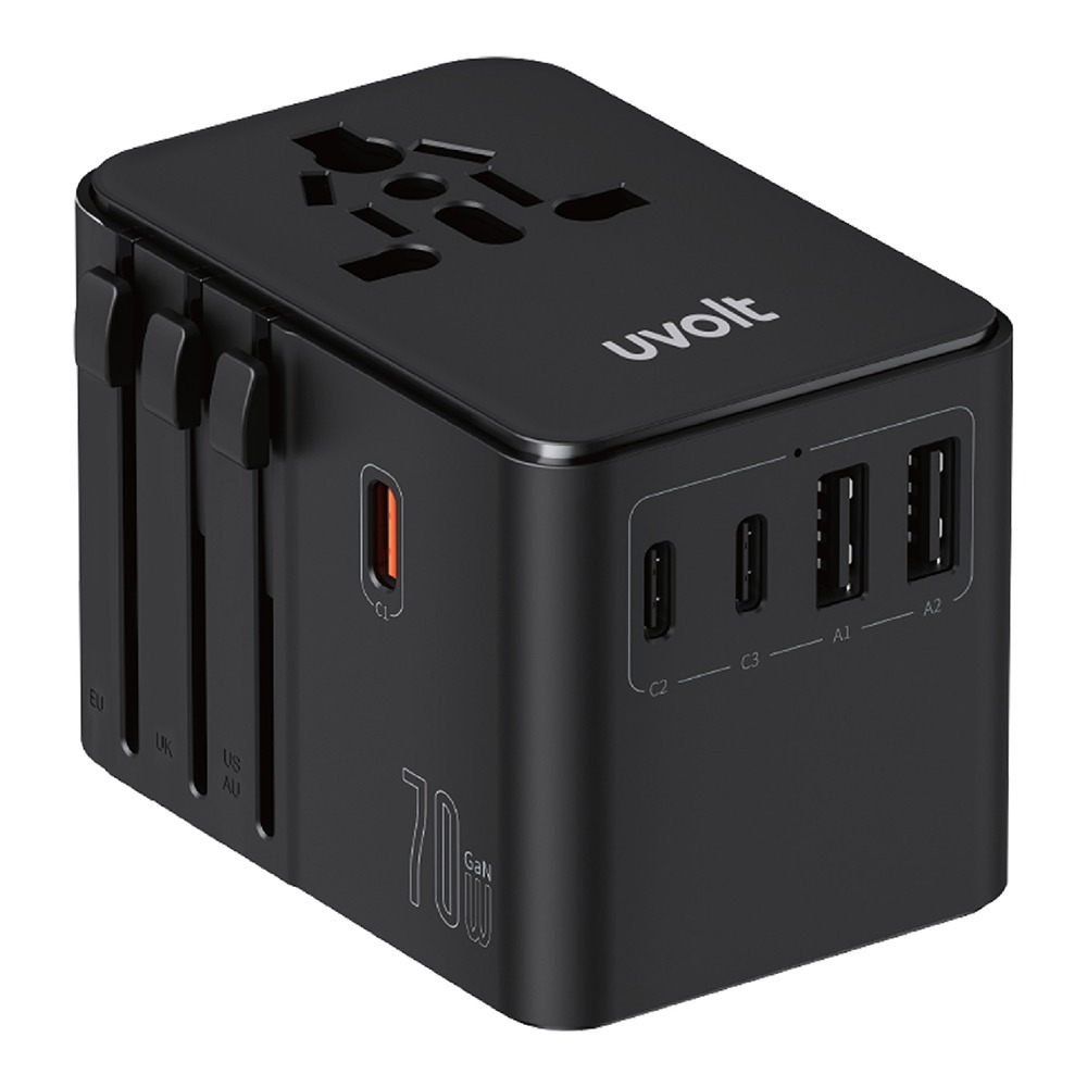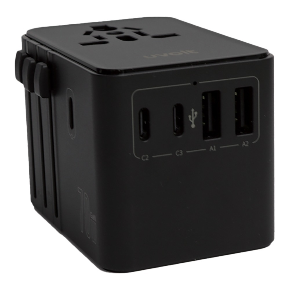 ADAPTER CHARGER (อะแดปเตอร์) UVOLT UVTA-09 UNIVERSAL TRAVEL - 70W DUAL USB-C BLACK