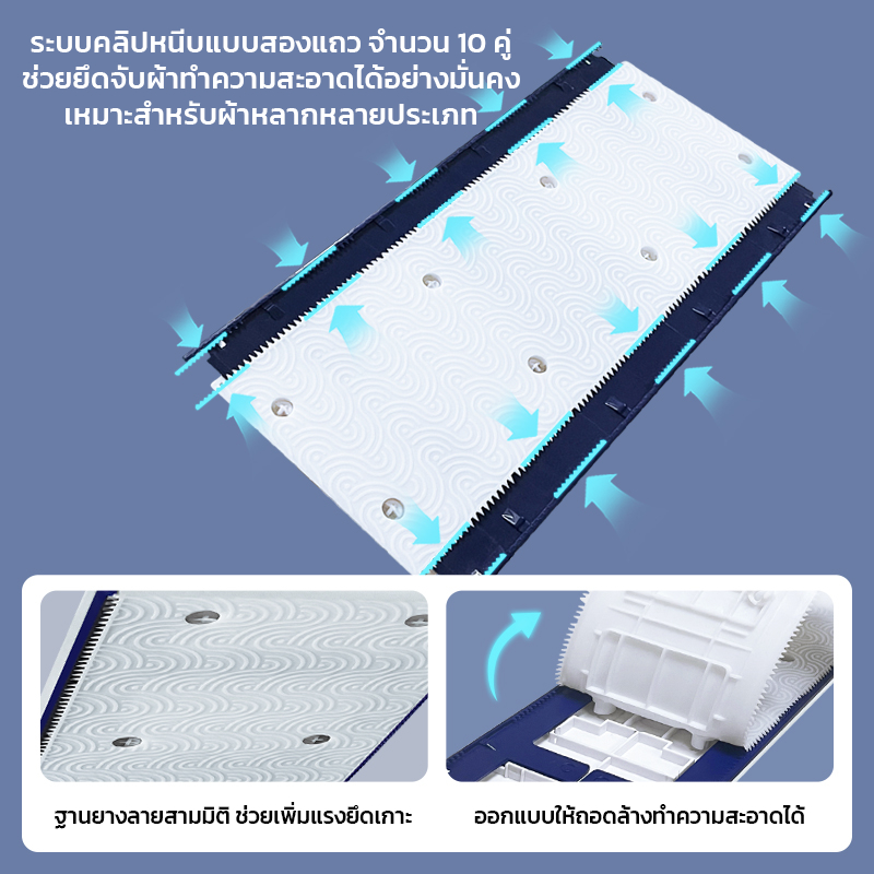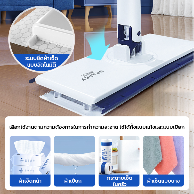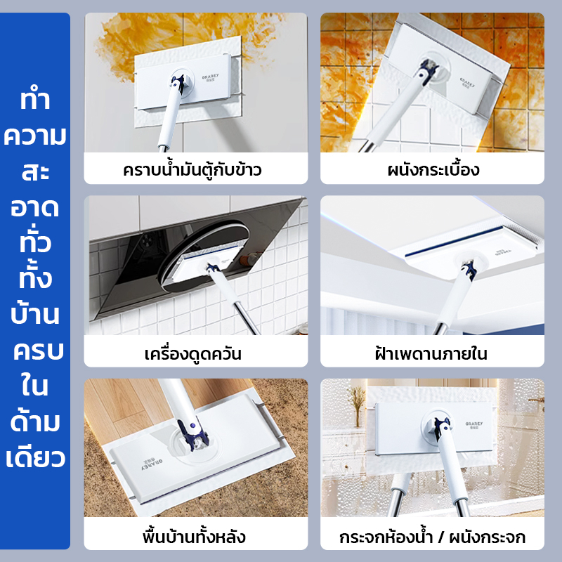 GRAREY ไม้ถูพื้นแบบเปลี่ยนผ้าใช้แล้วทิ้ง กว้าง 25 ซม. หัวหมุน360° ด้ามยืดยาว 123 ซม.