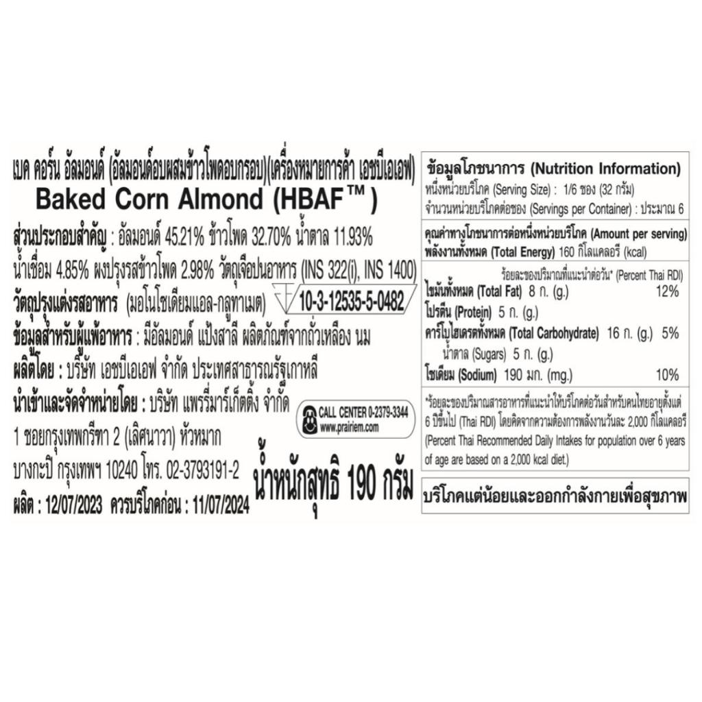 เอชบีเอเอฟ เบค คอร์น อัลมอนด์ 190 กรัม l HBAF Baked corn Almond 190 g.