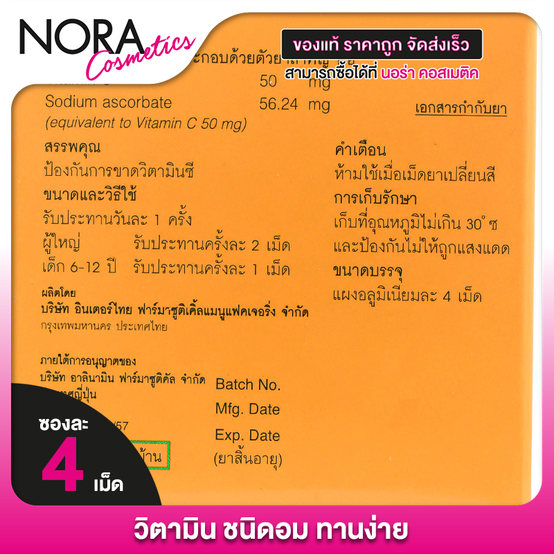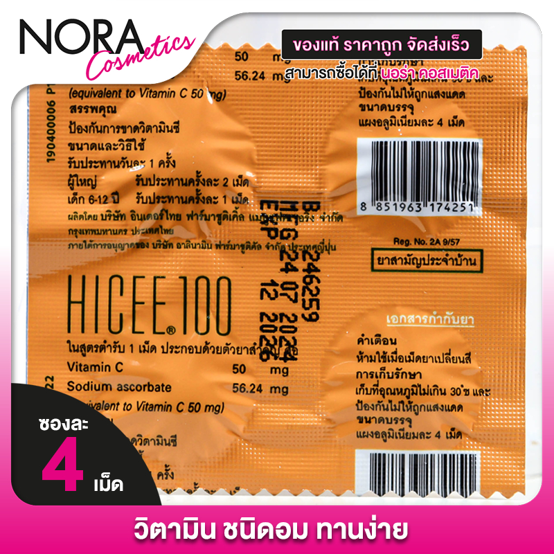 HICEE 100 mg. Vitamin C ไฮซี วิตามินซี [4 เม็ด] วิตามินซีแบบอม วิตามินซีเด็ก
