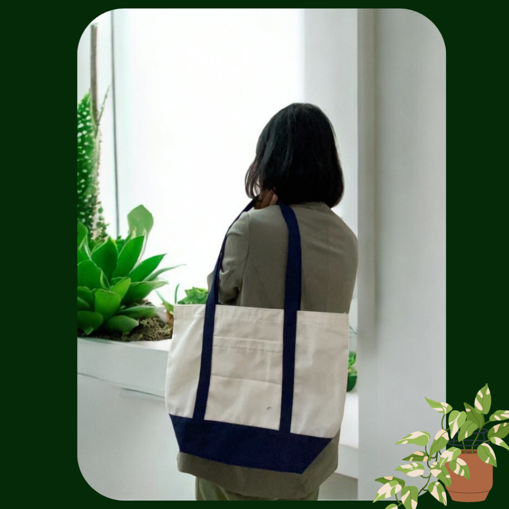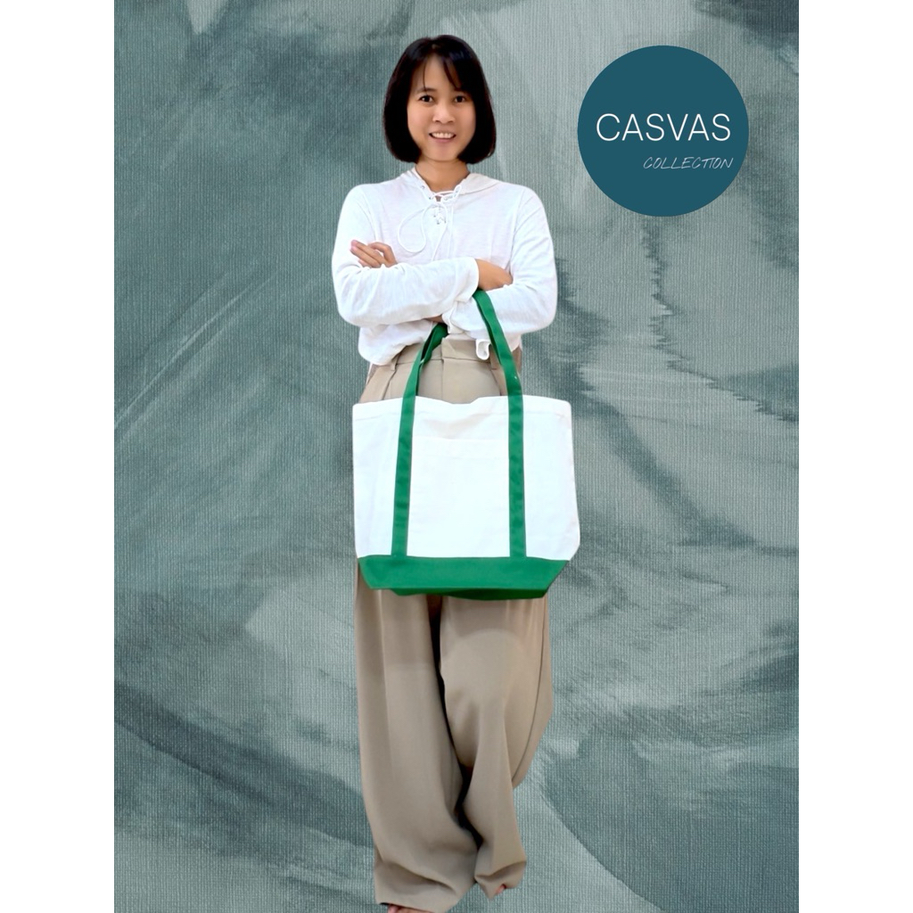 กระเป๋าผ้าเเคนวาส มีกระเป๋าด้านหน้า เเละด้านใน
