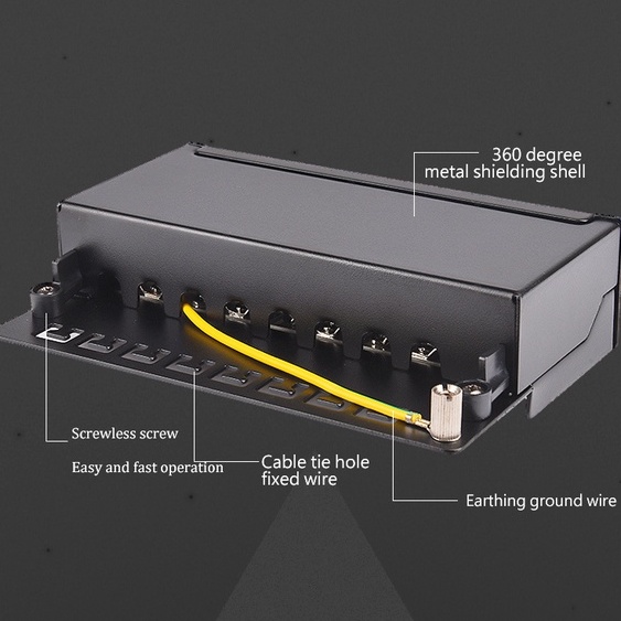 Linkwylan Mini Desktop CAT6A Cat6 8-Port Patch Panel Full Shielded Available สําหรับติดผนัง (แผ่นหลังมีรูติดตั้งรวมชุดสกรู)