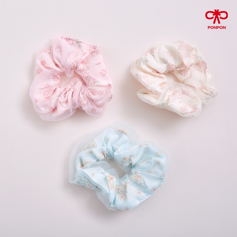 PONPON ยางรัดผมผ้าลูกไม้ หลากหลายสีสัน ไม่ทำร้ายเส้นผม ดีไซน์หวานละมุน