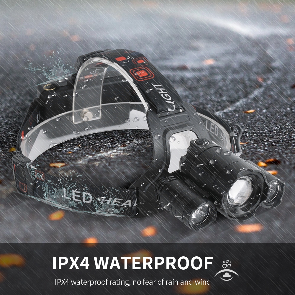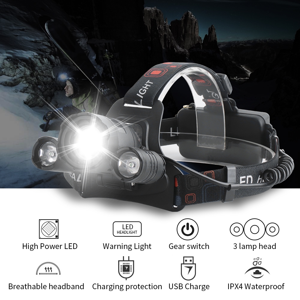 [ลดล้างสต๊อก] Boruit RJ-3000 LED Zoom ไฟหน้า 5 Mosds 3000LM USB ไฟหน้าแบบชาร์จไฟได้สําหรับตกปลาตกปลาล่าสัตว์