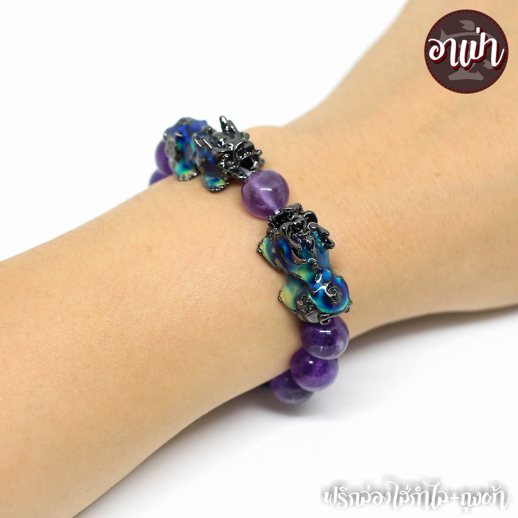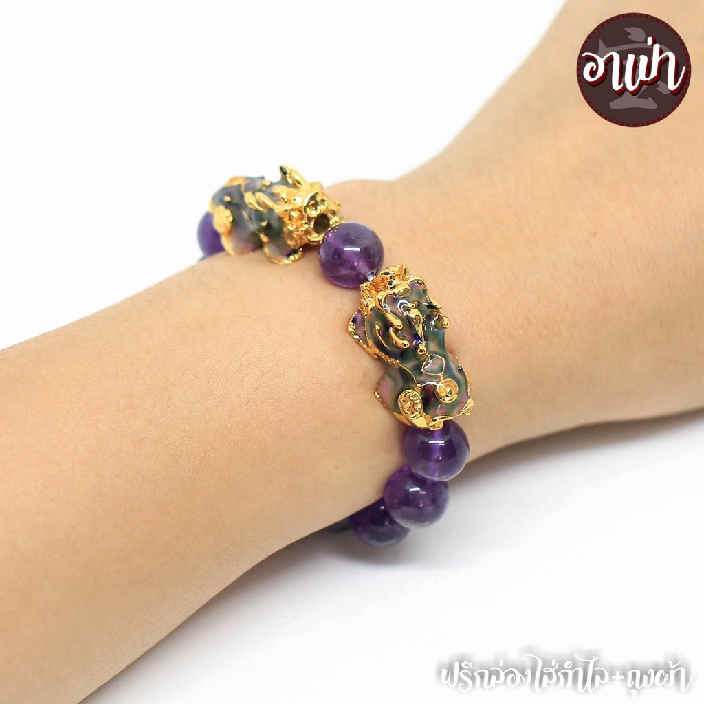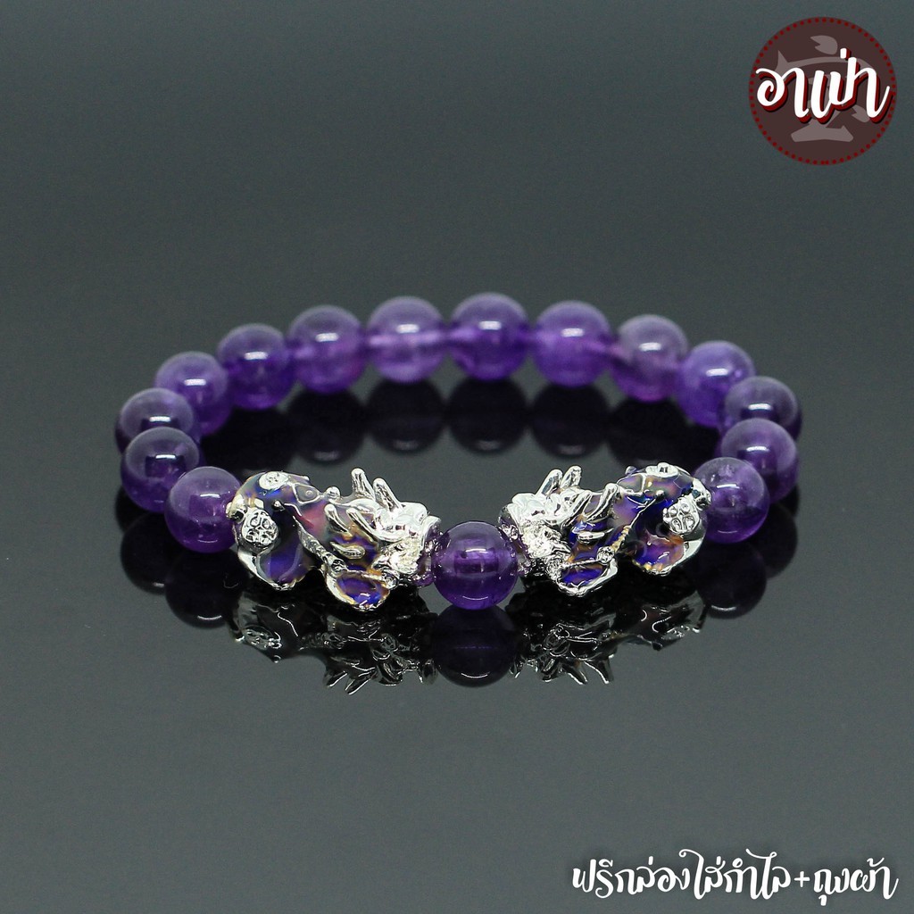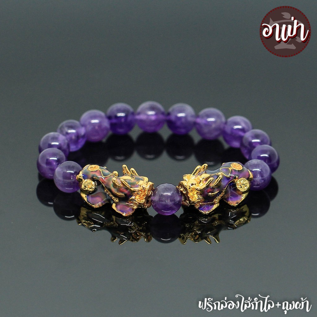 หินอเมทิสต์ Amethyst ขนาด 10 มิล ปี่เซียะเปลี่ยนสีคู่ หินแท้ 100% หินแห่งการบำบัดปัดเป่าสิ่งชั่วร้าย หินสีม่วง