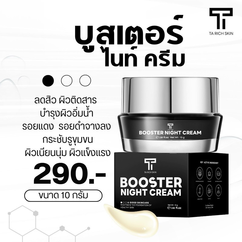 New ไนท์ครีมธาริชสกิน- Booster Night Cream หน้าขาวใส ลดรอยสิว ผิวฟู ออร่า บูสเตอร์ไนท์ครีม ธาริชสกิน ลดสิว ครีมผิวหน้า