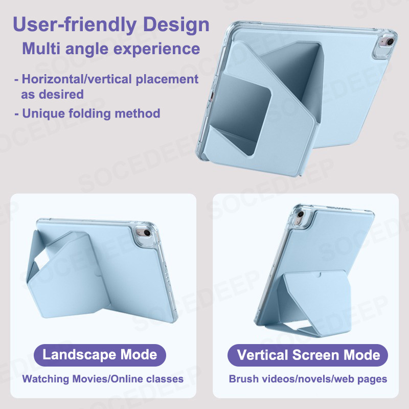 Socedeep สําหรับ iPad A16 11th Gen 10th 9th 8th 7th Gen 10.2 iPad10 Air11 Air7 Air6 Air5 Air4 10.9 Pro11 mini A17 Pro 7 6 Pro12.9 Air13 Pro13 ปลอกกันกระแทก Premium ขาตั้งที่มองไม่เห็นฝาครอบแท็บเล็ตกรณี