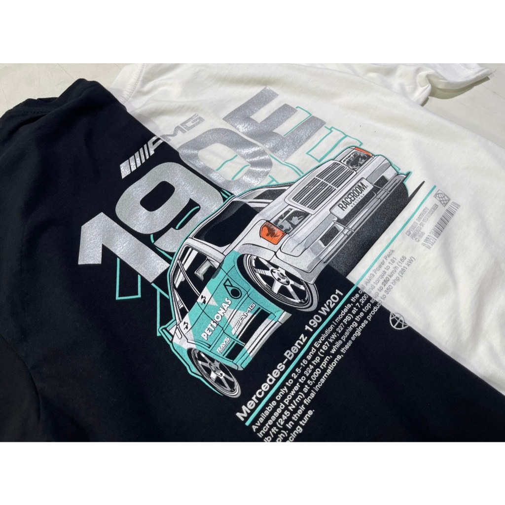 RACEROOM เสื้อยืดคอกลม สีดำ สีขาว ไม่ย้วย Cotton100 Mercedes-Benz 190E 313/314