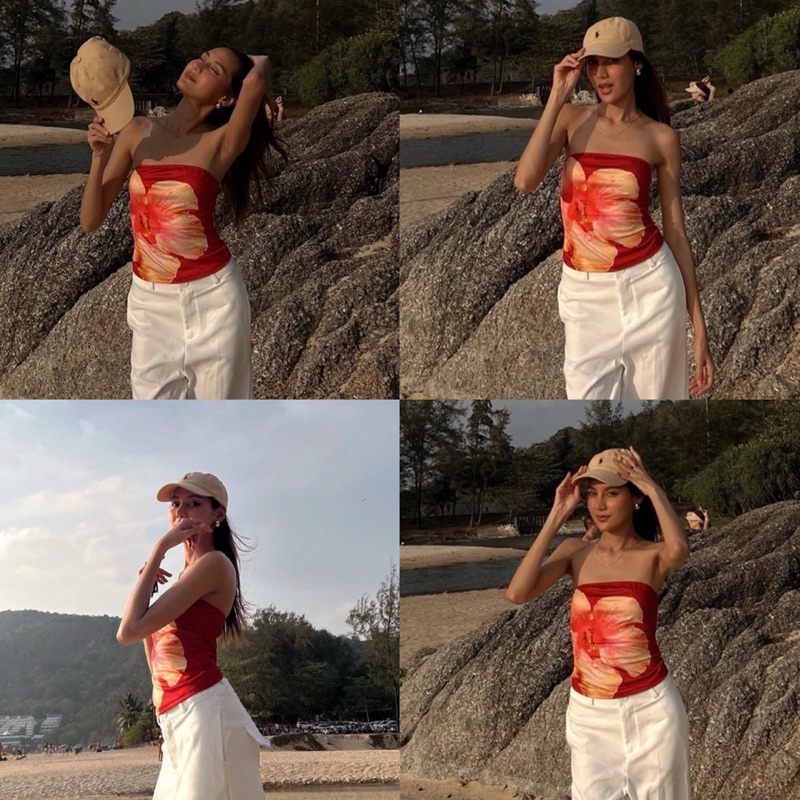 BY IRA (23219) เสื้อเกาะอกเซ็กซี่ พิมพ์ลายดอกไม้ แฟชั่นฤดูร้อน สายฝอคือห้ามพลาด แซ่บมาก!!
