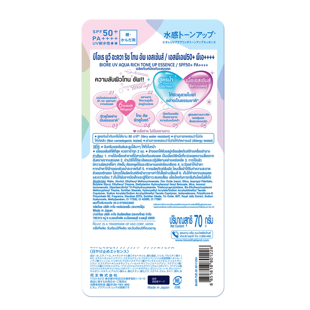 Biore บิโอเร ยูวี อะควา ริช โทน อัพ เอสเซ้นส์ เอสพีเอฟ50+ พีเอ++++ 70 กรัม