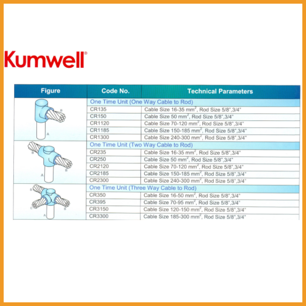 วันไทม์ Kumwell เชื่อมกราวด์ One Time 1 ทาง 2 ทาง 3 ทาง เบอร์ 16-240 mm. เชื่อมกราวด์ 5/8 อุปกรณ์ไฟฟ้า กราวด์ สายกราวด์