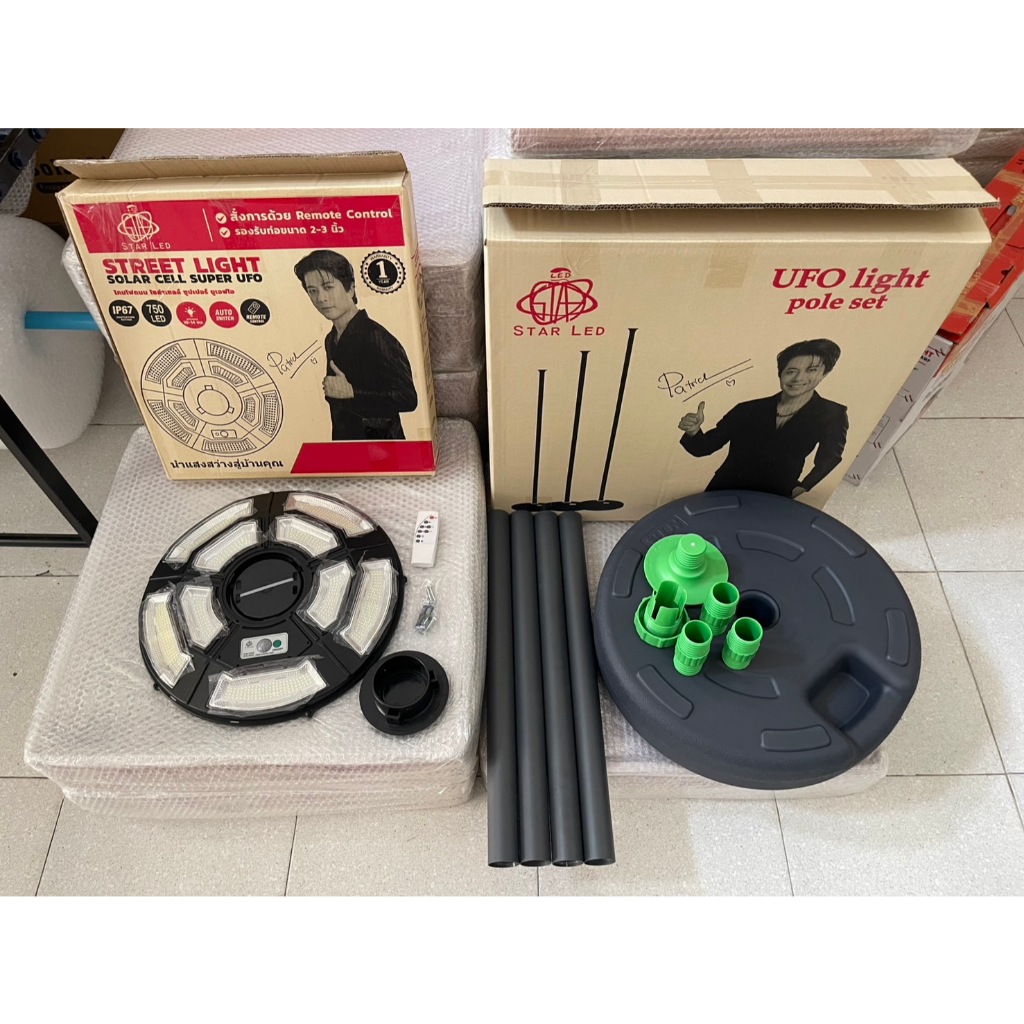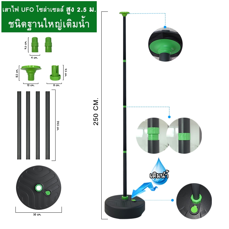 โคมไฟสนาม UFO แถมเสาแบบฐานเติมน้ำ สูง2.5 เมตร โคมไฟใหญ่ 42 ซม. สว่างยันเช้า ของแท้ ประกัน 1 ปี