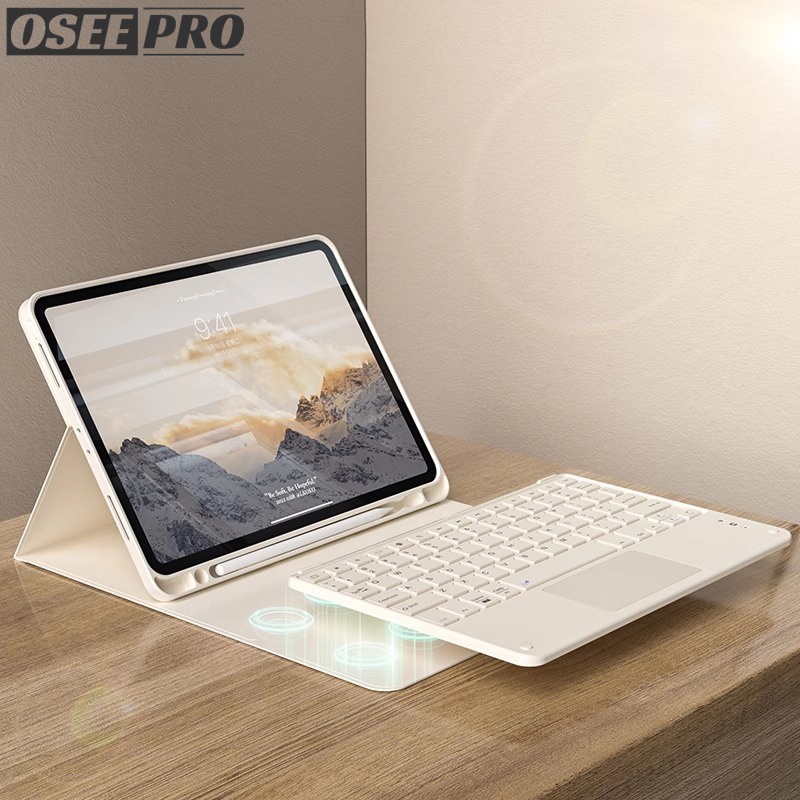 Osee Pro เคส iPad เคสคีย์บอร์ดบลูทู ธ ที่ควบคุมด้วยแม่เหล็ก พร้อมที่ใส่ดินสอสําหรับ for iPad ไอแพด gen 7 8 9 เคสไอเเพดgen 10 gen 11 เคส ipad air 4 ไอแพด air 5 Air 6 Air 7 M2/M3 11''(2024/2025)เคสไอแพดโปร11 2021 pro 2 3 4 11 นิ้ว เคสพร้อมถาดปากกาซ้าย