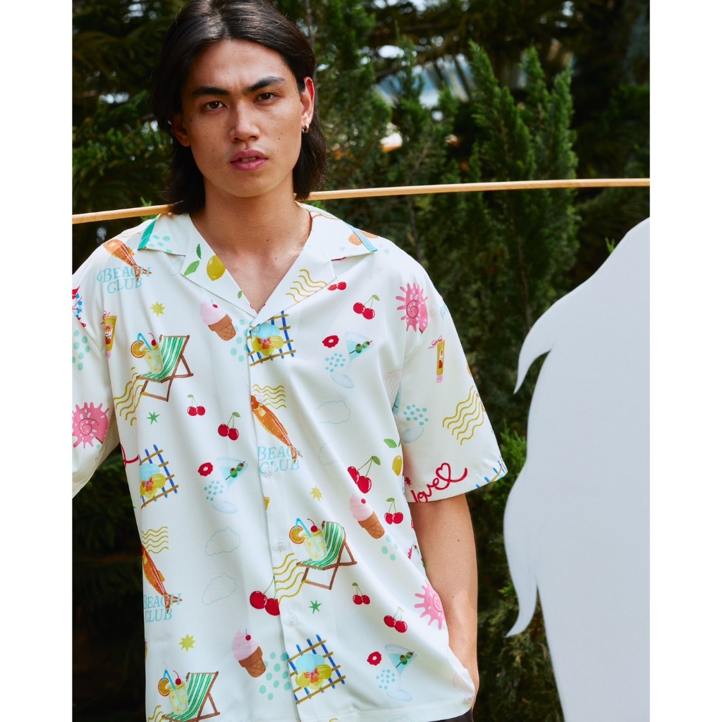 Tilly Milly เสื้อเชิ้ตผู้ชายลายกุ้ง ( สีครีม ) - Seaside Soirée - drop 2