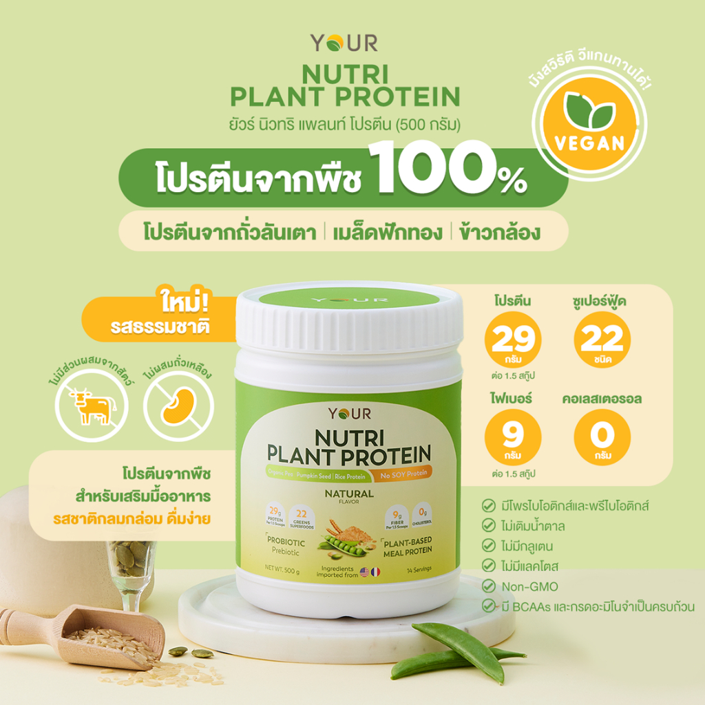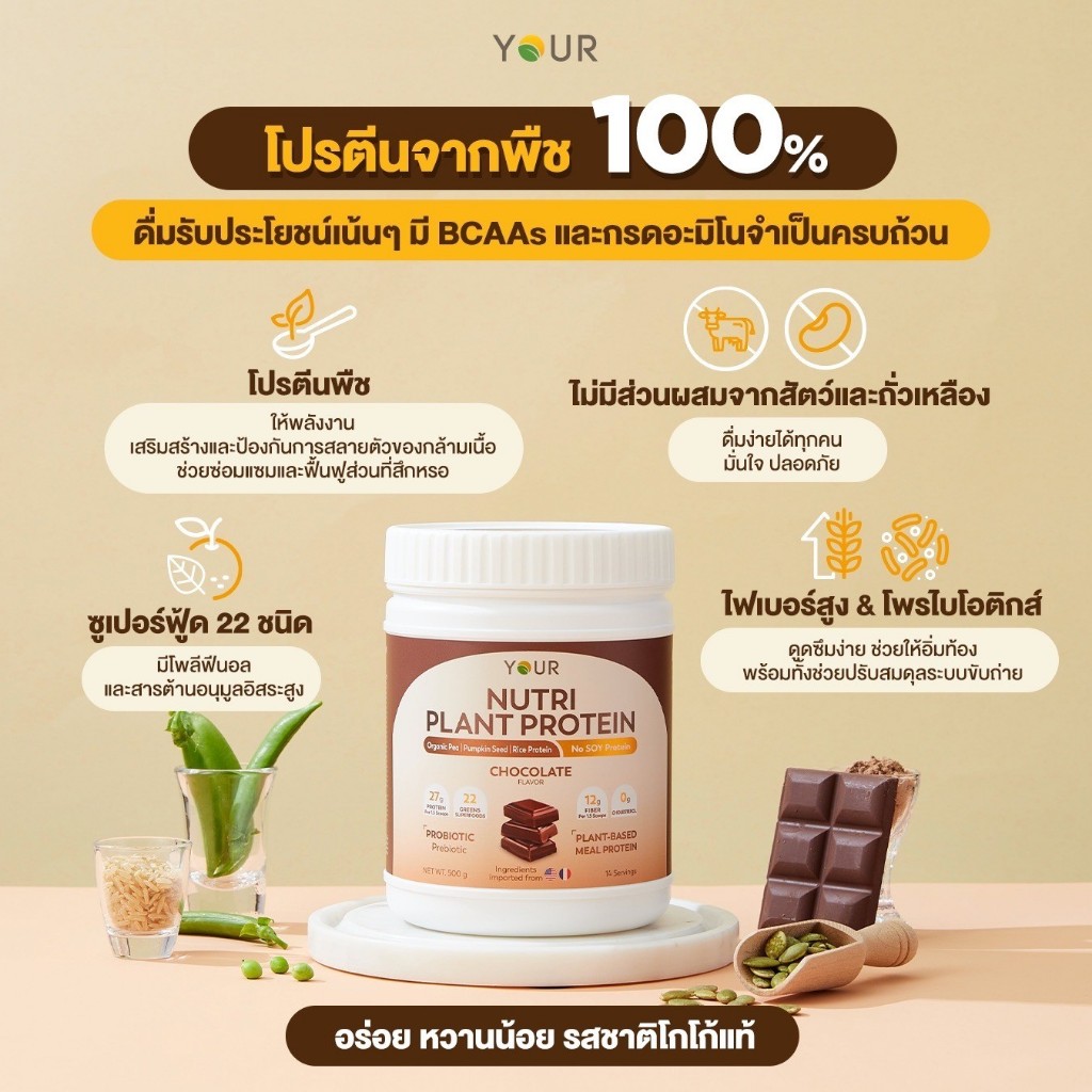 YOUR nutri plant protein ยัวร์ นิวทริ แพลนท์ โปรตีนพืข ซอง 52.5 กรัม ไฟเบอร์ probiotics ธัญพืช