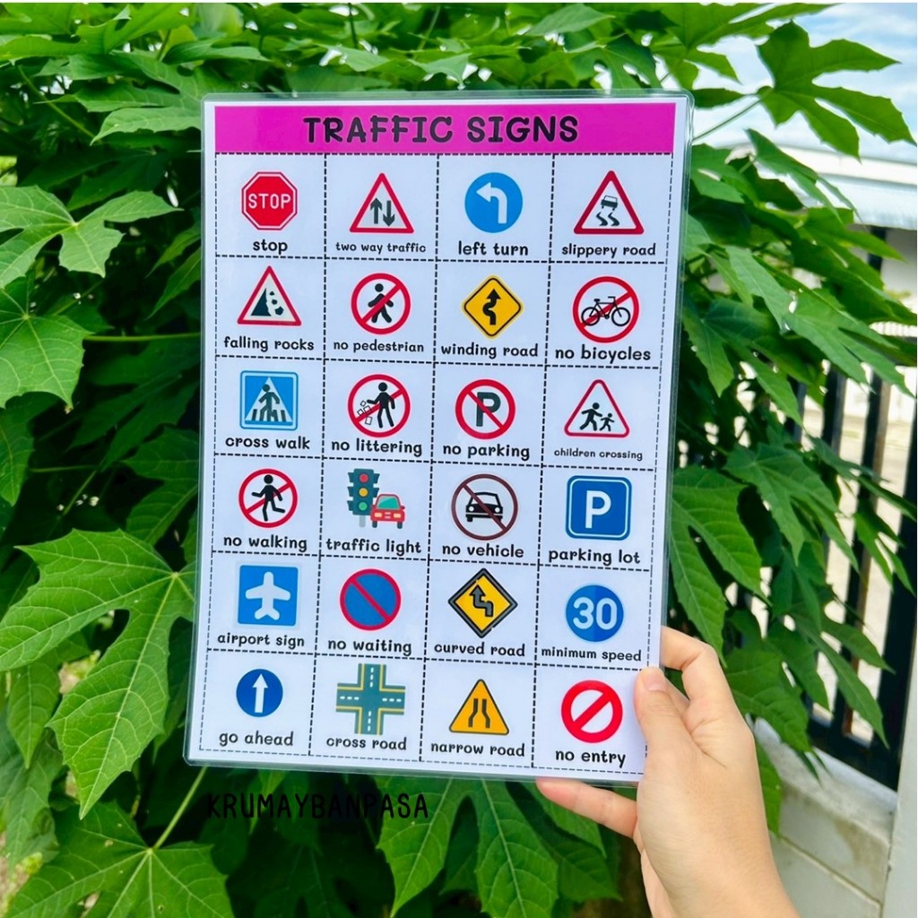 ชุดสื่อการสอน traffic signs 1ชุด = โปสเตอร์ บัตรคำ เเปะติด สื่อการสอนภาษาอังกฤษ บัตรคำการเรียนรู้