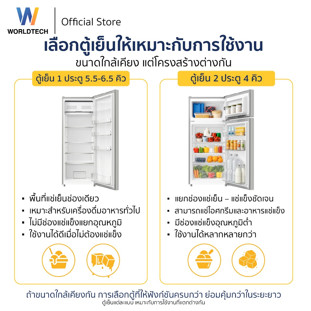 Worldtech ตู้เย็น 2 ประตู 4 Q/112 ลิตร มอก. ประหยัดไฟเบอร์ 5 รับประกัน 3 ปีรุ่น WT-MRF112