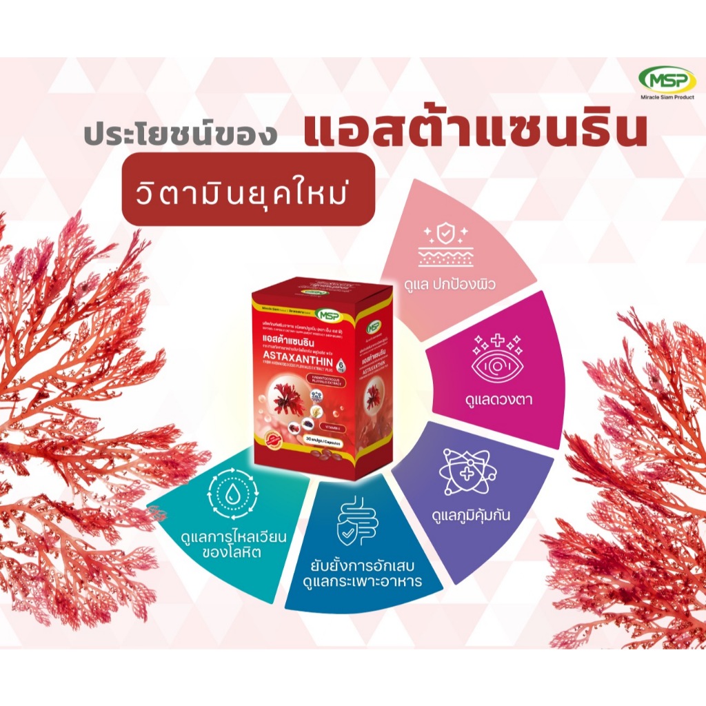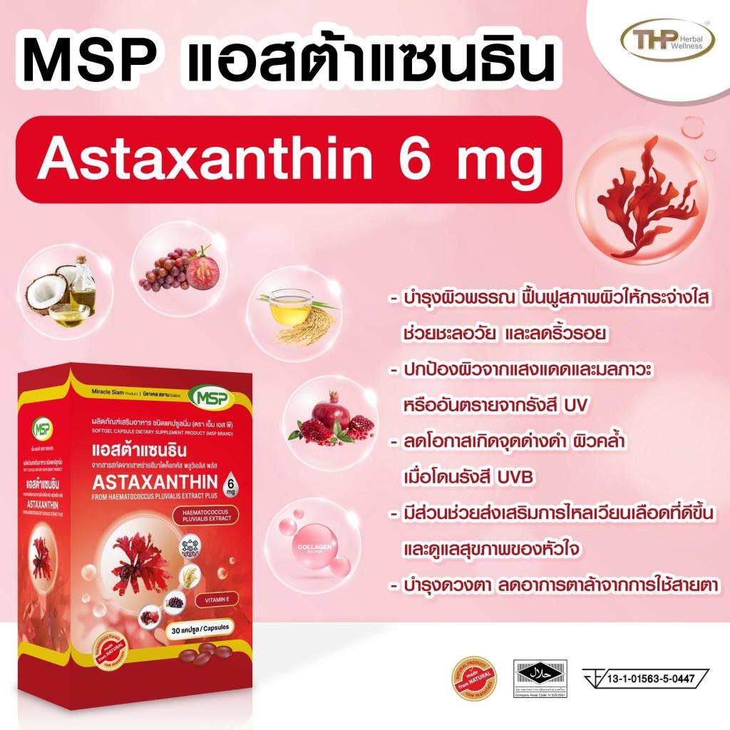 MSP Astaxanthin 6 mg เอ็มเอสพี แอสตาแซนธิน 6 มก. [30 แคปซูล ][THP เดิม]