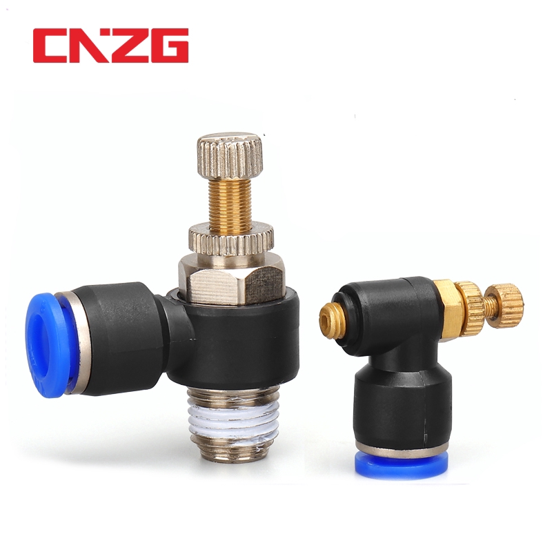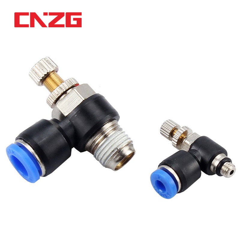 สล วาล์วคันเร่งนิวเมติก 1/8 1/4 3/8 1/2 ชายเกลียวฟิตติ้งการไหลของอากาศควบคุมความเร็ว 4 ~ 10 มม. หลอด