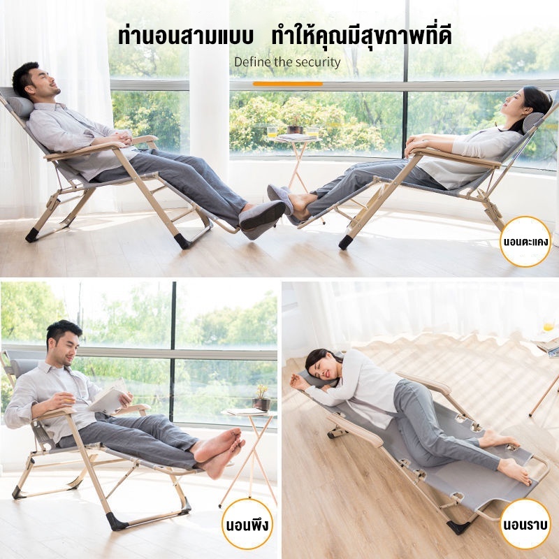 WHF ก้าอี้เอน เตียงพับได้ เก้าอี้พับ ปรับนอนได้ พับได้ ความจุแบริ่ง: 300KG เก้าอี้ปรับนอน พับง่าย