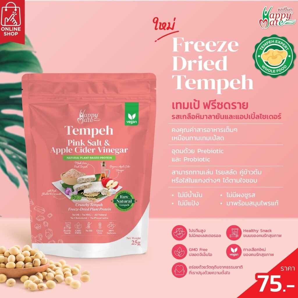 HappyMate เทมเป้กรอบ รสเกลือหิมาลายันและแอปเปิ้ลไซเดอร์ 25 กรัม