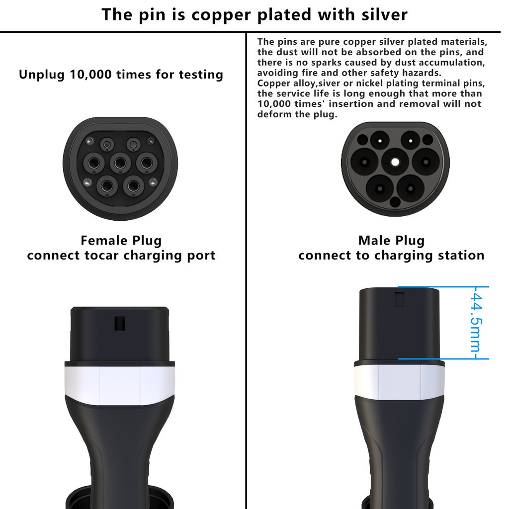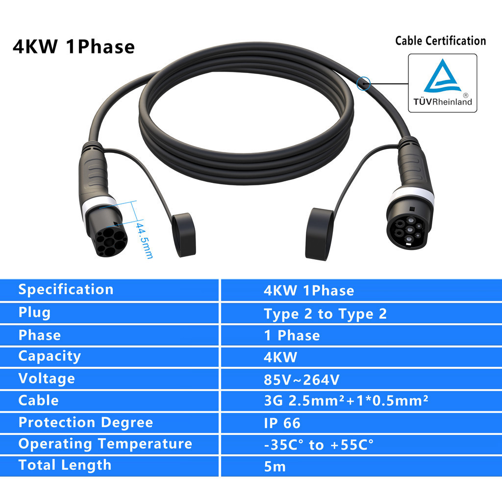 Evsow Car Charger Type2 ถึง Type2 สายชาร์จ 16A 11KW Type2 สถานีชาร์จ Type2 หญิงชาย EV สายชาร์จ 5 M