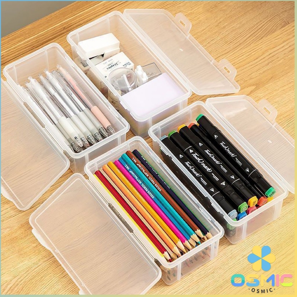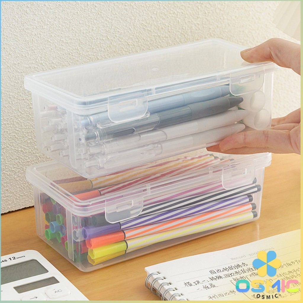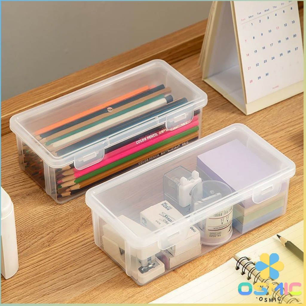 MIC กล่องใส่เครื่องเขียน อเนกประสงค์ พร้อมฝาปิดล็อก กันน้ํา กันฝุ่น กล่องดินสอพลาสติกใส pencil-box