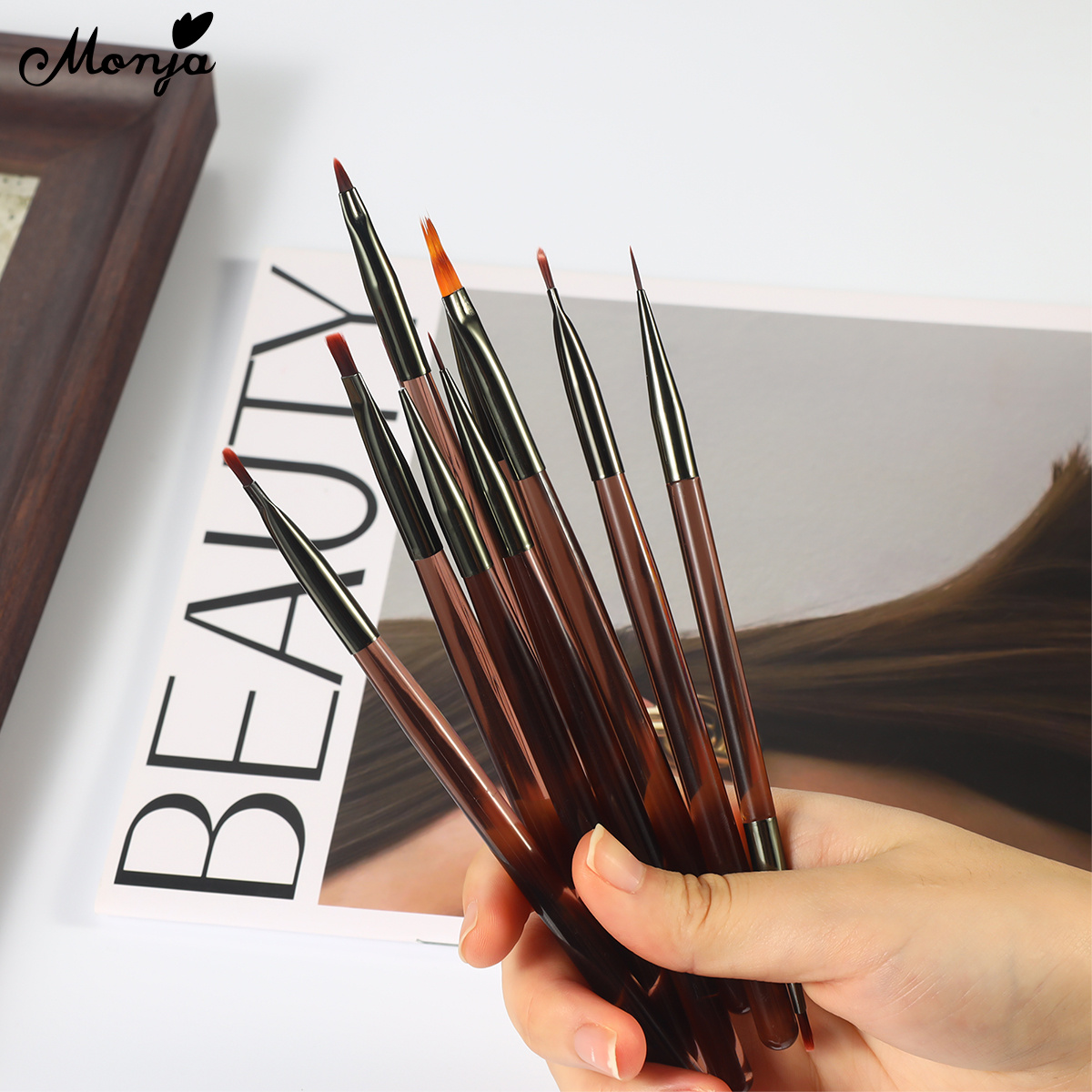 9ชิ้น มอนจา เล็บ ศิลปะ ซับ ดอกไม้วาดปากกาฝรั่งเศสแปรงยูวีเจลจิตรกรรมล้างสีน้ําตาลจับเครื่องมือ