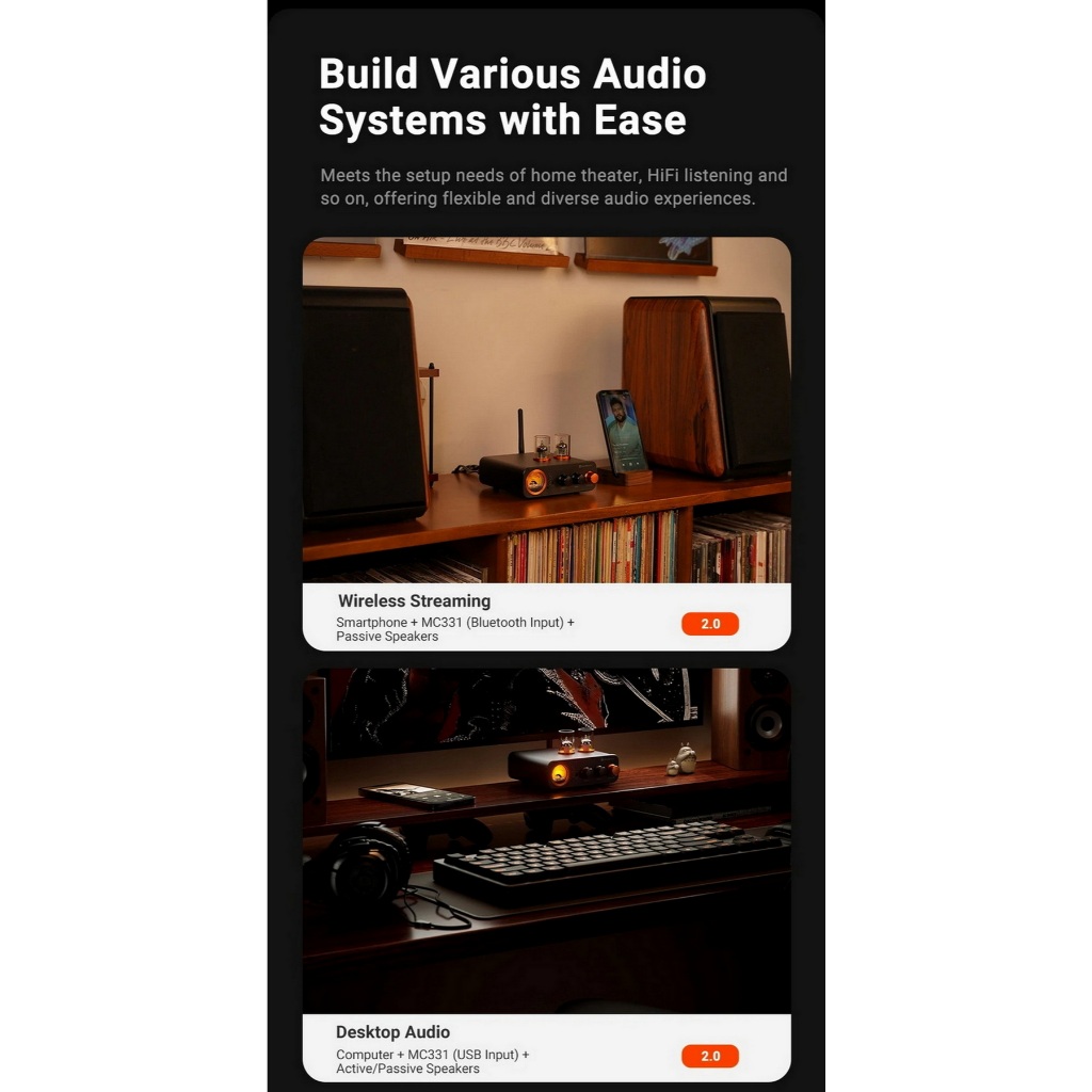 [ประกันศูนย์ไทย] Fosi Audio MC331 All-in-One DAC Amp หลอดแก้ว รองรับ Bluetooth VU Meter