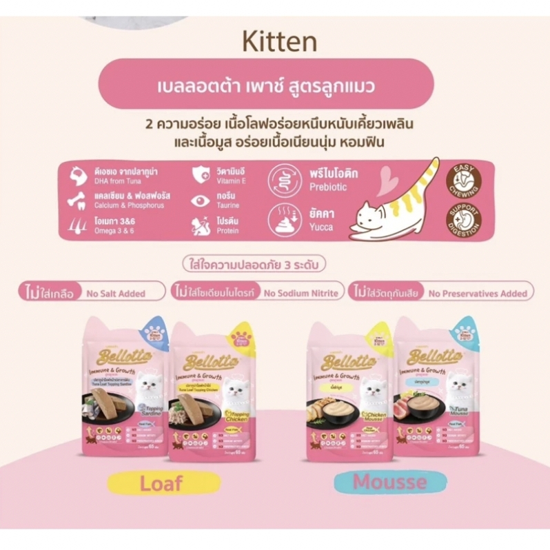 Bellotta เบลลอตต้า อาหารแมวชนิดเปียก สำหรับแมวเด็ก และแมวทุกช่วงวัย แบบซอง ขนาด 85g*1ซอง