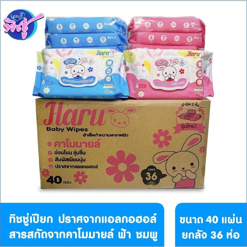 [ยกลัง] Haru wet wipe ฮารุ กระดาษทิชชู่เปียก ขนาด 40 แผ่น ลัง 36 ห่อ สูตรอ่อนโยน