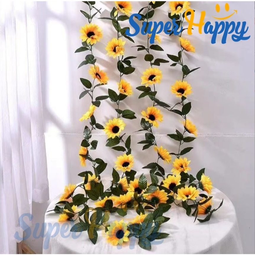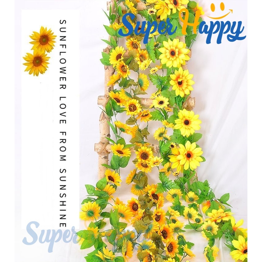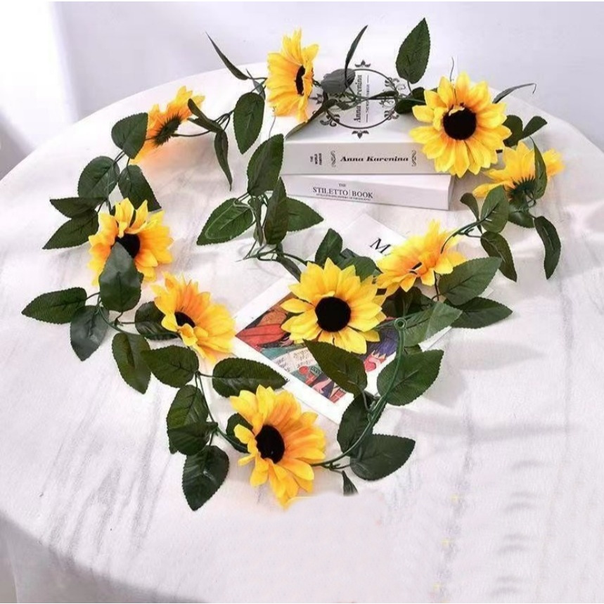 เถาดอกทานตะวันประดิษฐ์ ประดับใบสีเขียว ใช้สำหรับตกแต่งผนัง สวน รั้ว งานแต่งงาน ตกแต่งบ้าน
