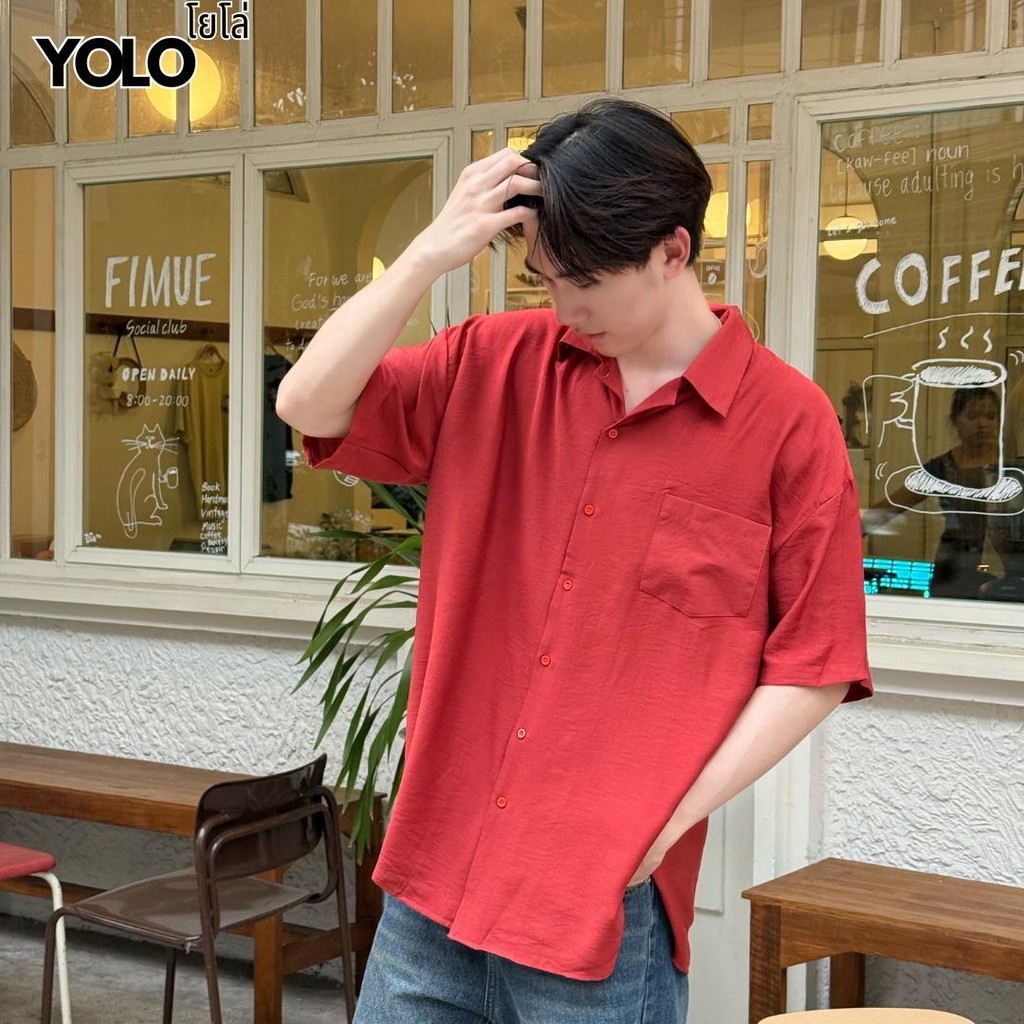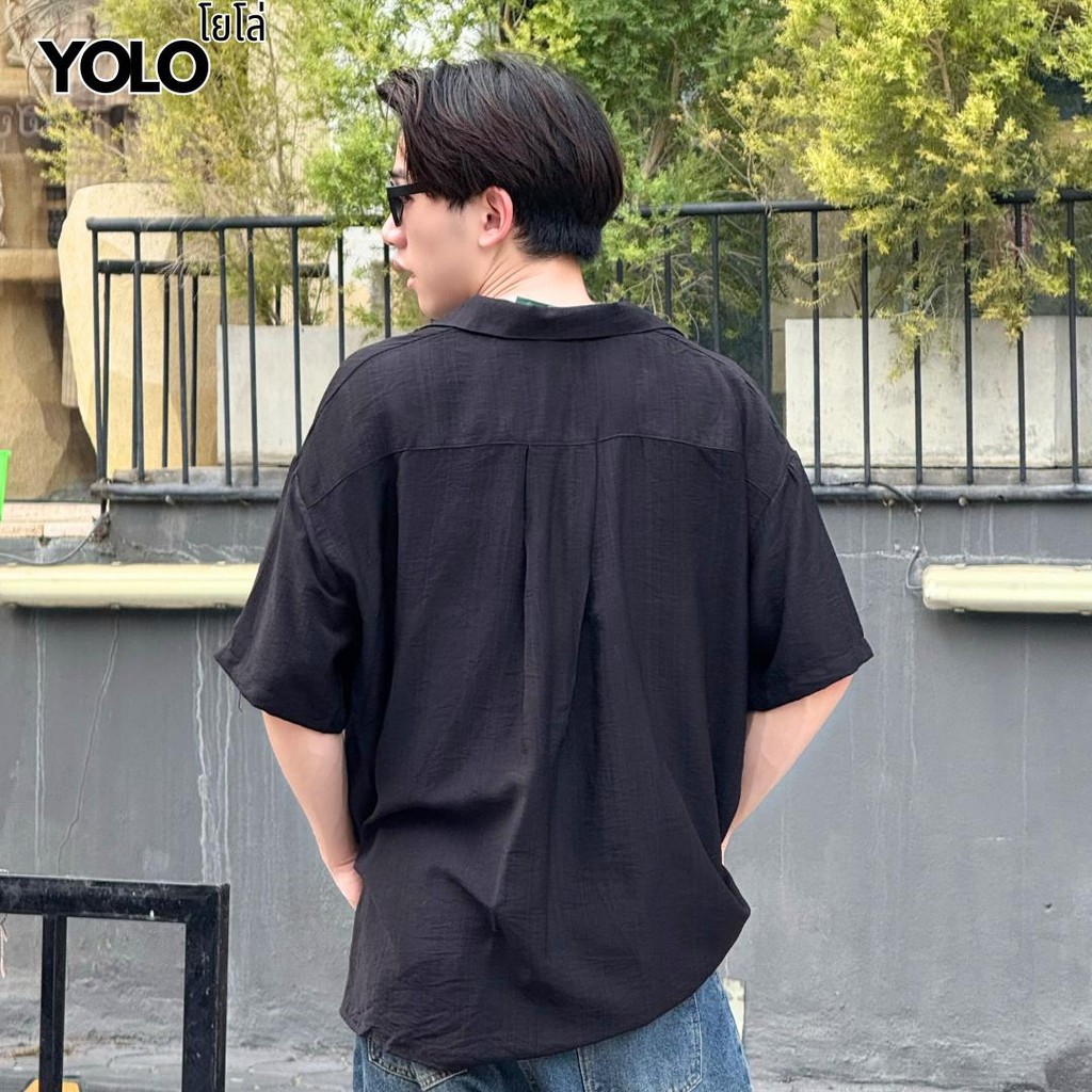 YOLO เสื้อเชิ้ต FREESIZED เสื้อเชิ้อเกลาหลี เสื้อเชิ้ตสีพื้น เสื้อขนสั้นแขนสั้น ติดกระดุมหน้า YT25001