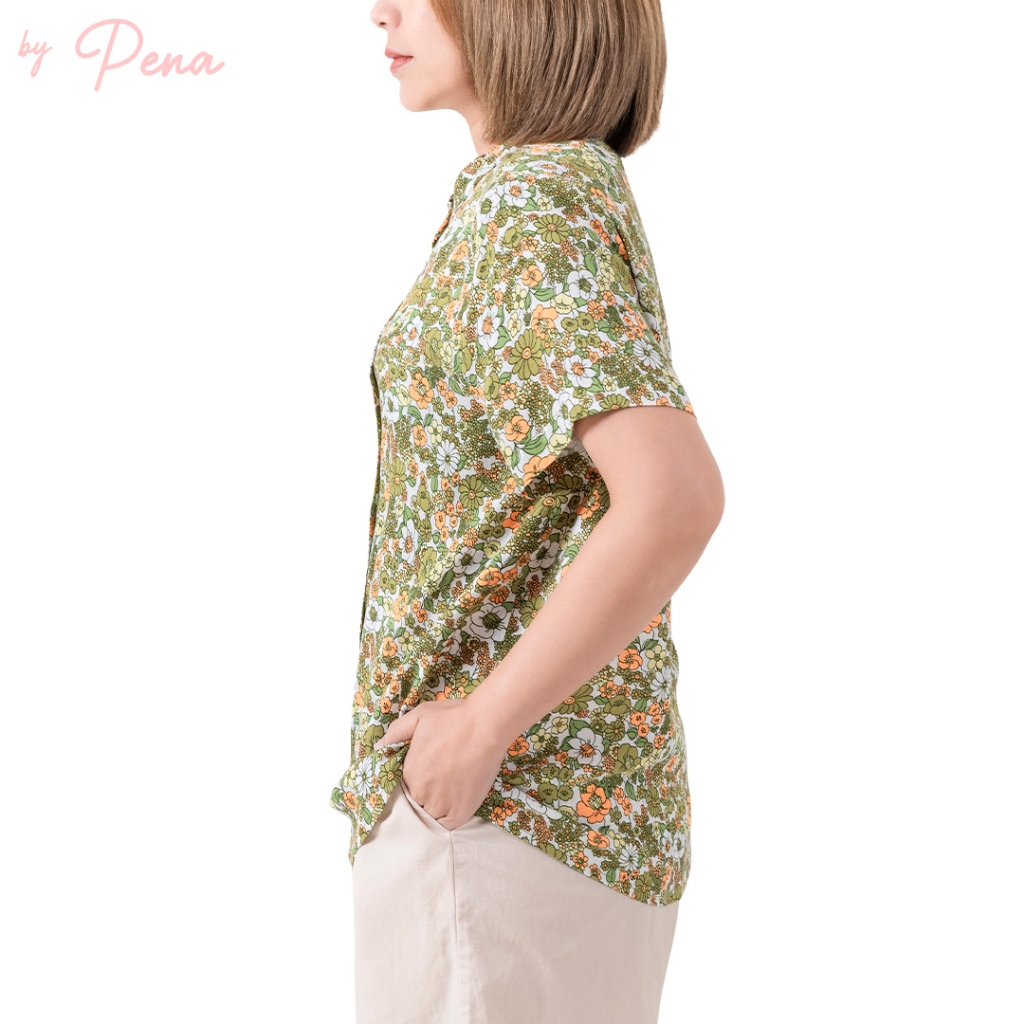 By Pena เสื้อเบลาส์ผู้หญิง คอจีนลายดอกไม้ แขนสั้น BPSS042502
