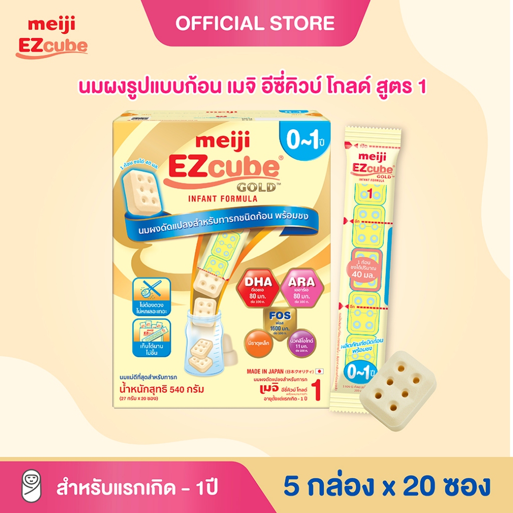 Meiji EZcube Infant formula 1 เมจิ อีซี่คิวบ์ โกลด์™ นมผงดัดแปลงสำหรับทารก สูตร 1 540 กรัม แบบก้อน 5 กล่อง x 20 ซอง