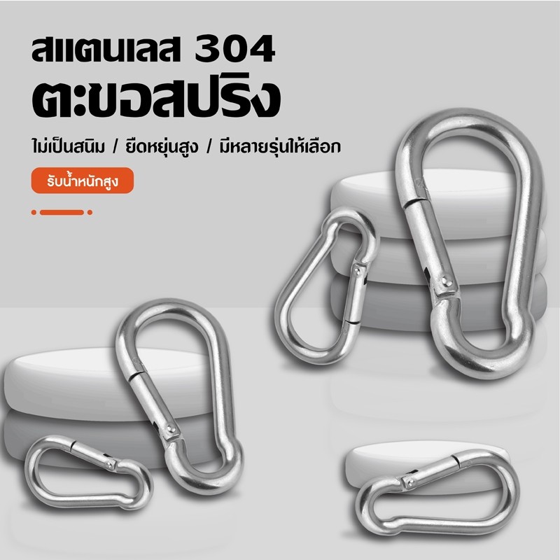 คาราบิเนอร์สแตนเลส304 ขนาด M4/M5/M6/M8/M10 เกรดพรีเมี่ยม แบบล็อคสปริง/เกลียว แข็งแรงรับน้ำหนักสูง