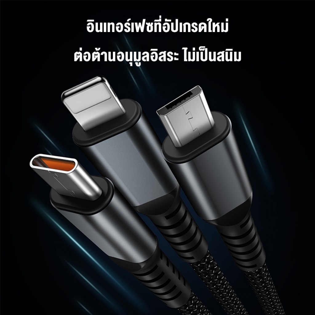 OSCROP สายชาร์จเร็ว 3 IN 1 Type C / USB / PD สูงสุด 100W สายยาว 2m พร้อมไฟ หลายสี โอนถ่ายข้อมูลได้